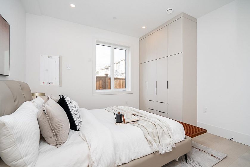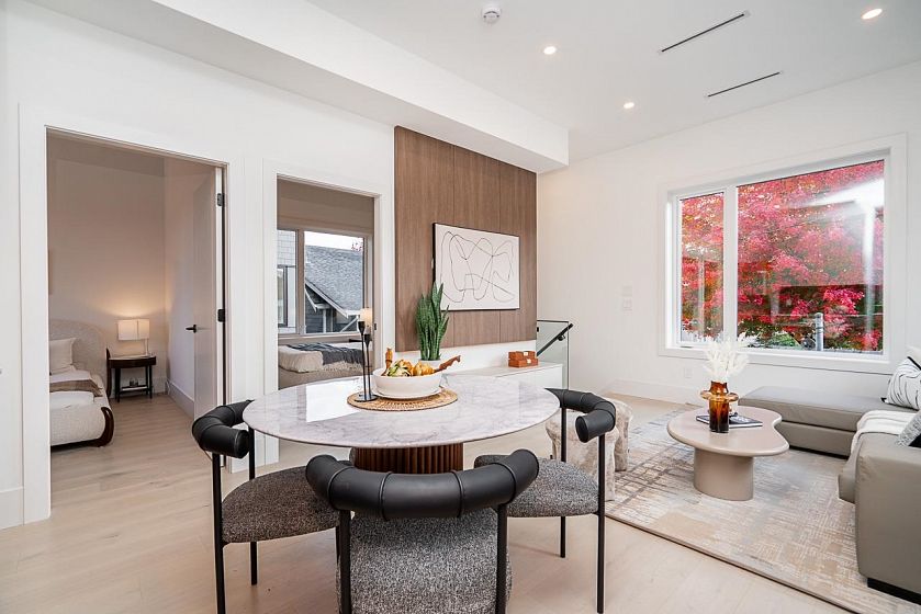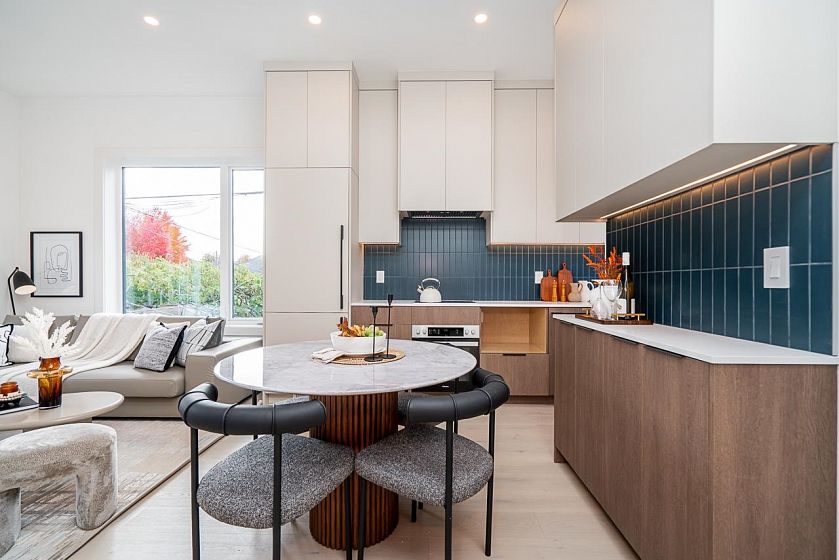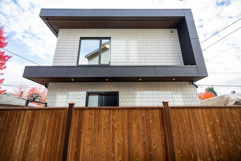 Brand detached infill house featuring a modern open-concept design with high ceilings. Offers 3 bedrooms and 2 bathrooms, perfect for family living. Quality-built with Fisher & Paykel appliances, sleek finishes, and central air conditioning for year-round comfort. Enjoy your private patio and outdoor space—ideal for entertaining. Contemporary design meets everyday luxury in this stunning new home.