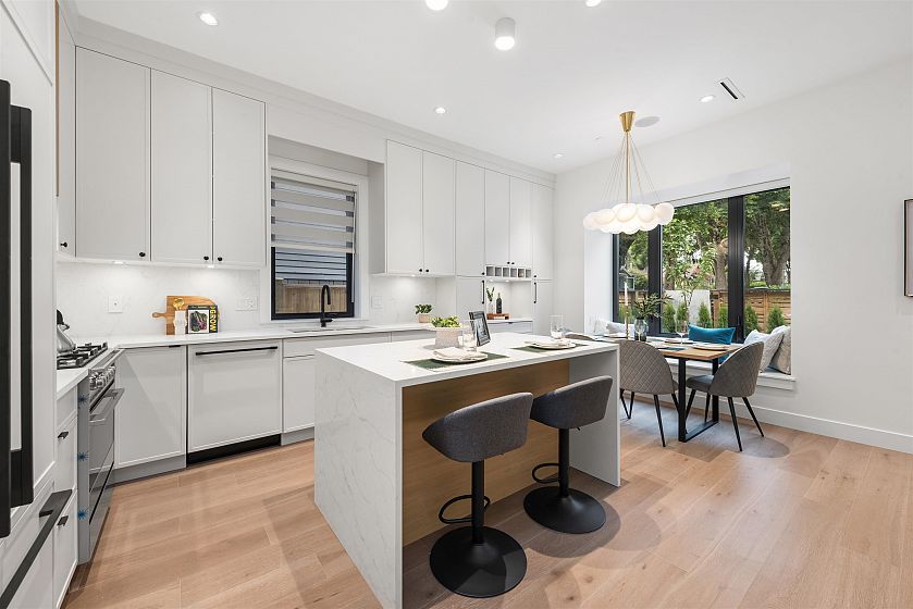 Front Unit - Welcome to this stunning masterpiece in the heart of Fraserhood! Perfectly positioned near trendy restaurants, cafés, transit, parks, schools, and a host of other amenities, this home combines convenience with exceptional design. Built by a reputable builder, it showcases quality craftsmanship throughout, featuring a bright open-concept main level that flows effortlessly from room to room. Upstairs, you’ll find three generously sized bedrooms, each with ample storage and its own ensuite bath. Enjoy the private yard, an ideal outdoor space for families along with premium touches like a high-end Fisher & Paykel appliance package, air conditioning, HRV system, EV-ready garage, 2-5-10 warranty coverage, and a crawl space for extra storage.