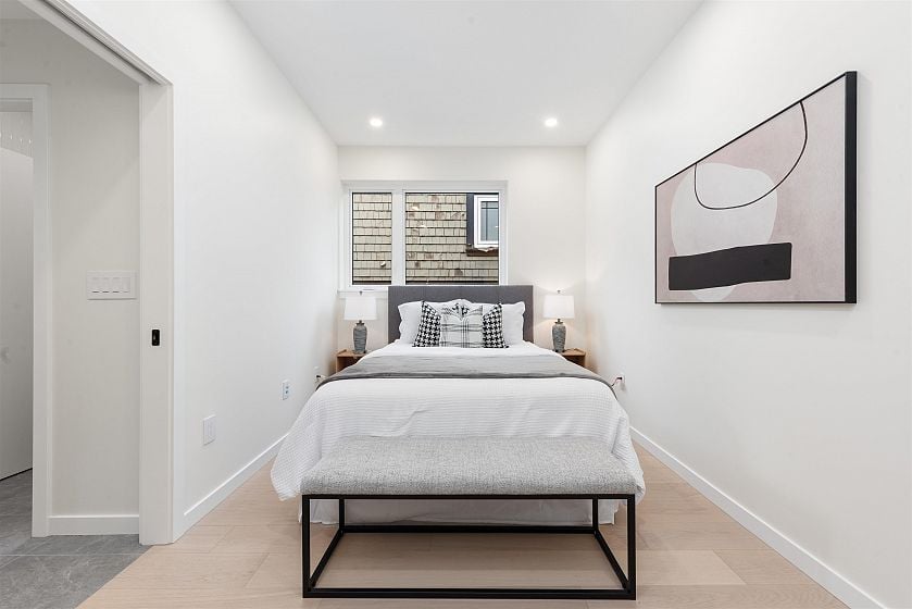 Welcome to this stunning 3 bed, 2.5 bath designer duplex in the heart of Kitsilano. Thoughtfully crafted by Architrix with interiors by PTL Design, this home features premium integrated appliances, radiant in-floor heating (4 zones), A/C with Nest, and Caesarstone & Vicostone surfaces. The sleek kitchen showcases custom millwork and a luxurious black porcelain island. Enjoy elegant lighting by Bocci, and relax by the natural gas fireplace. Custom millwork throughout, including a built-in office space by Farrell Custom Woodwork. Includes a detached garage, private outdoor space, and easily accessible crawl space for extra storage. Located on a quiet tree-lined street, steps to parks, shops, and transit. In General Gordon Elementary & Kitsilano Secondary catchments. Don't miss it!