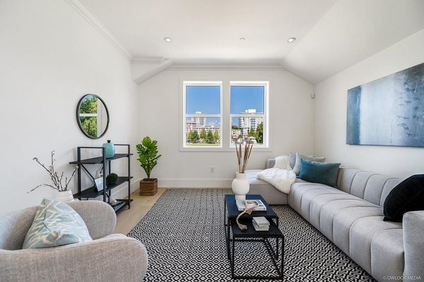 Welcome to Kensington Parkside Residences. This new 1/2 Duplex is well constructed and finely crafted home offering a total 1,341 sq/ft over 2 levels. REVERSED floor plan with main level with 2 bedrooms, full bath & washer/dryer. Second level has master with ensuite, living room, kitchen, dining room & den. Plenty of natural light, radiant floor heating, hot water on demand and HRV system. Exterior constructed with durable and long-lasting Hardie wood. Attached single car garage. Kingcrest Park across the lane, T&T minutes away. School catchment: Lord Selkirk Annex & Elementary, Gladstone Secondary, Laura Secord Elementary, Vancouver Technical Secondary. *OPEN HOUSE Sun Nov 9th @ 2-4pm*