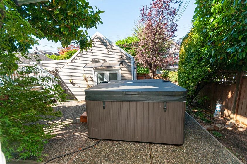 Fully reno'd UNFURNISHED 4 bdrm, 2.5 bath, 1500 sq ft half-duplex just steps from Kits Beach in Vancouver’s coveted Kitsilano neighbourhood. Bright open main lvl features hardwood flrs, soaring ceilings, a modern kitchen w/ quartz waterfall island, gas range, s/s appliances and seamless flow to dining and living areas. Patio off kitchen is perfect for BBQ and overlooks private garden. Top lvl is a master retreat w/ ensuite, deck and views of English Bay and North Shore mtns. Lower lvl offers 2 bdrms, full bath and foyer w/ access to garden and hot tub. Converted garage serves as 4th bdrm or office/media space. Prime location near beaches, seawall, Jericho, tennis courts, W 4th shops, cafes, markets, transit and top schools. Street parking only. Pets upon approval. Hot tub maint. NOT incl.