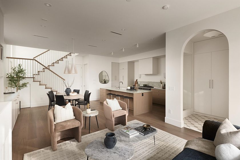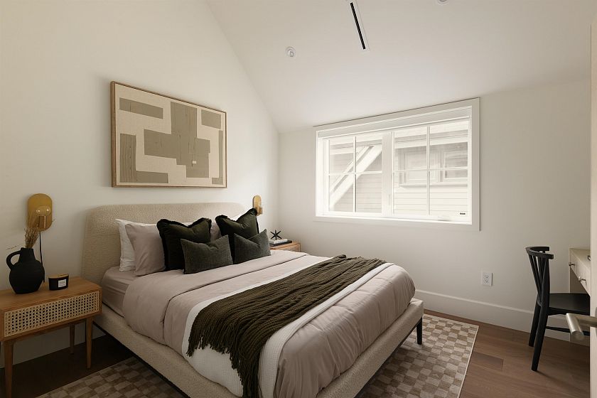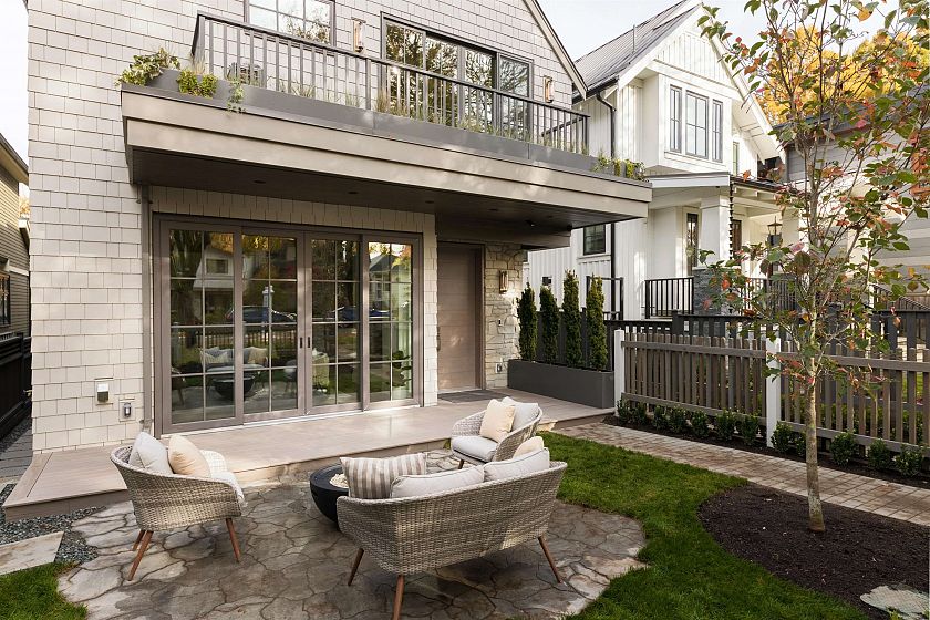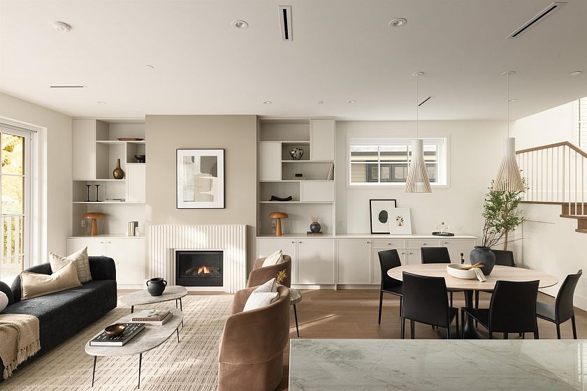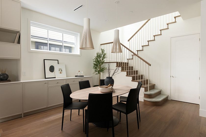 Designed by Jacqueline Taggart, this custom 2-storey home pairs timeless transitional architecture with elegant interiors & functional livability. Expansive main floors feature 10ft ceilings, Esmeralda quartzite kitchens with Bertazzoni appliances, custom millwork throughout & lift-and-slide doors that lead to your private South-facing yard. Upstairs, vaulted 11'8 ceilings crown three spacious bedrooms. The primary bedroom is a generous 13'3 x 13'7 with a walk-in closet, sliding glass doors to your sunny balcony & a truly luxurious ensuite. Ample storage throughout the home highlighted by an epoxied crawlspace. With thoughtful planning, premium finishes, & a true single-family feel, this home elevates everyday comfort for families & down-sizers alike.