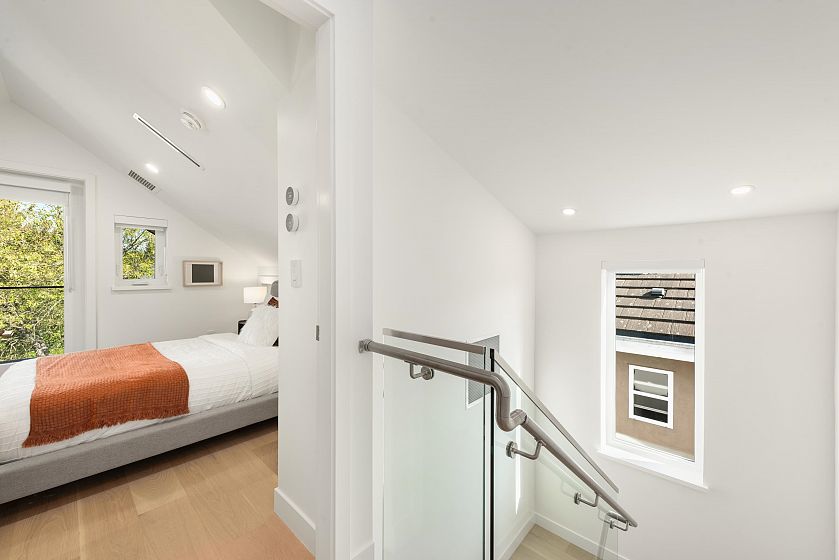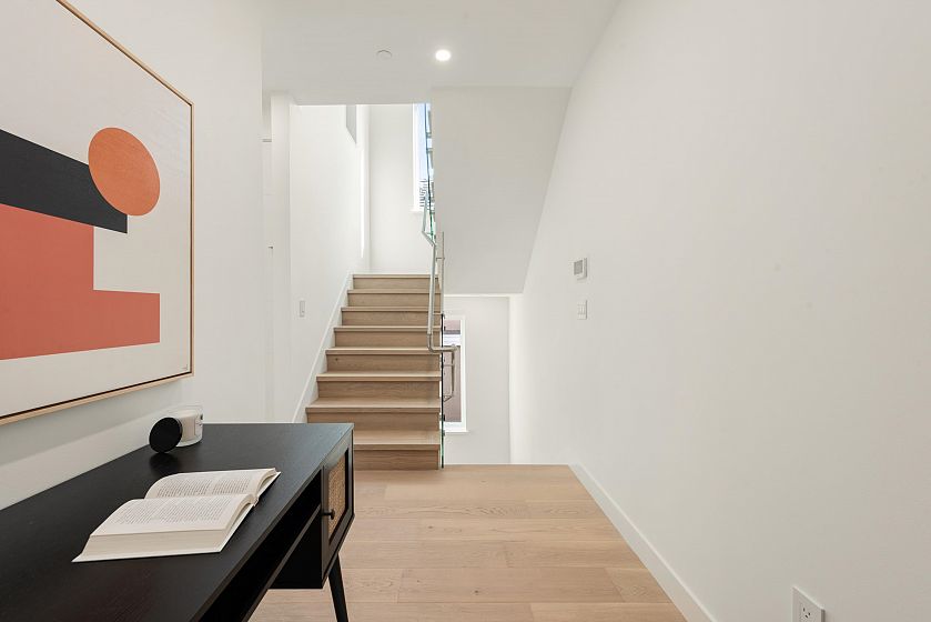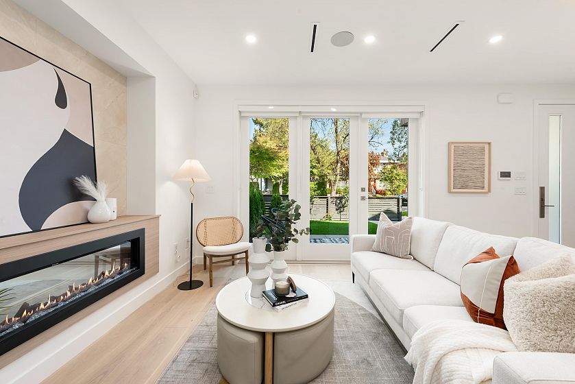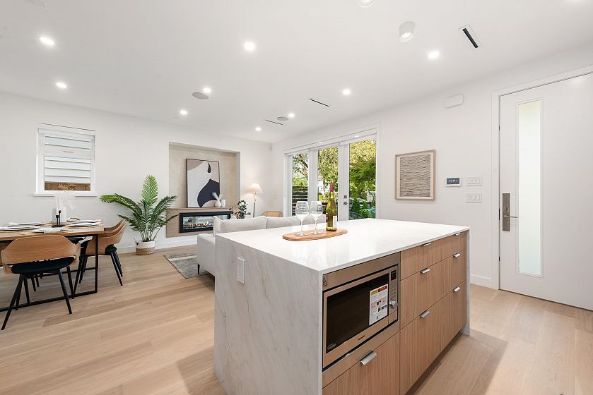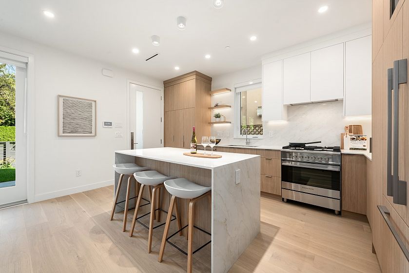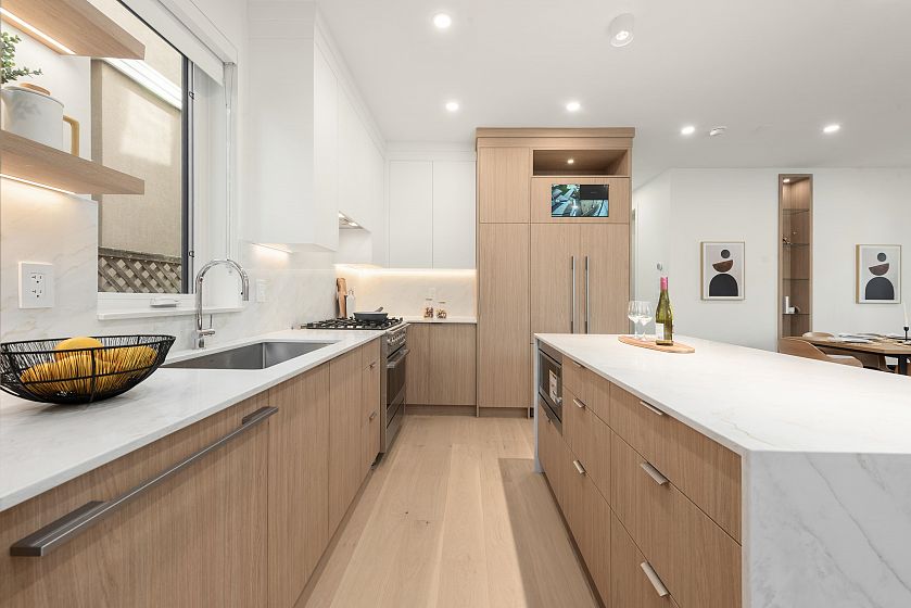 Nestled on a tranquil, tree-lined street in Arbutus-one of Vancouver's most prestigious neighbourhoods. This newly built 1685sf duplex offers the perfect blend of luxury&convenience. Just moments from top public&private schools, UBC, cafés, restaurants, parks, shops&beaches. Open concept layout w/9-foot ceilings, wide-plank light oak flooring&oversized windows that flood the space with natural light. The gourmet kitchen is a chef's dream, featuring a waterfall island, quartz countertops, extensive cabinetry&premium stainless-steel appliances. Upstairs, three spacious bedrooms, each w/its own ensuite, plus a den. Features include in-floor radiant heating with programable “Nest” thermostats, AC/heat pump, security system and a 560sf heated crawlspace for storage. Open House: Nov 15&16, 2-4pm
