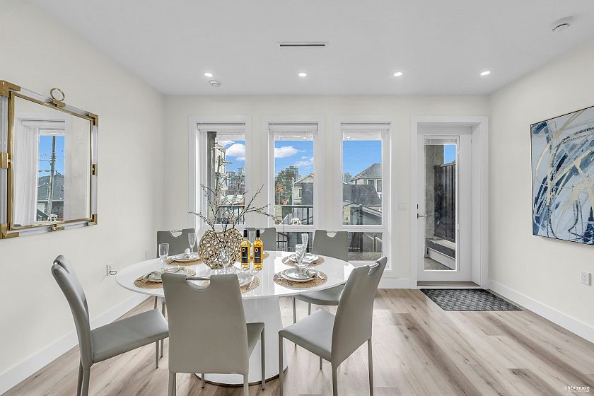 Impeccably built and almost new side-by-side duplex in the heart of Marpole! This elegant residence offers nearly 2,000 sq.ft. of bright, thoughtfully designed living space featuring 3 generous bedrooms upstairs and a 2-bedroom legal suite below with separate electrical meters and hot water tanks. Quality craftsmanship throughout with engineered hardwood floors, high ceilings, and air conditioning for year-round comfort. A large detached garage plus one open parking space provide convenience and flexibility. Ideally located near top schools, parks, and just a short walk to Marine Gateway SkyTrain, shops, and restaurants—where superior quality meets exceptional lifestyle! Equipped with 200-amp electrical service and two Level-2 outlets, making it ideal for EV charging or future upgrades.