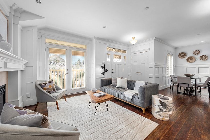 Front Kits Duplex with front porch and attached garage! Rarely will you find this 3 bedroom and 3.5 bath on 3 levels with a smart flexible floor plan featuring a Large Walk out bedroom and ensuite on the main floor w/ outdoor patio, excellent storage options and a true feel of a house. Enjoy a bright, open layout featuring granite countertops, French doors, radiant heated hardwood floors throughout and a gas fireplace. The south-facing deck and private garden create inviting outdoor living spaces. Recent upgrades include a new (2025) boiler/heat exchanger (over $20K) and fresh paint throughout. Be a part of this desirable community, a pet- and rental-friendly non-conforming 3-unit strata, this home truly has it all. Excellent location near General Gordon Elementary and Kitsilano Secondary