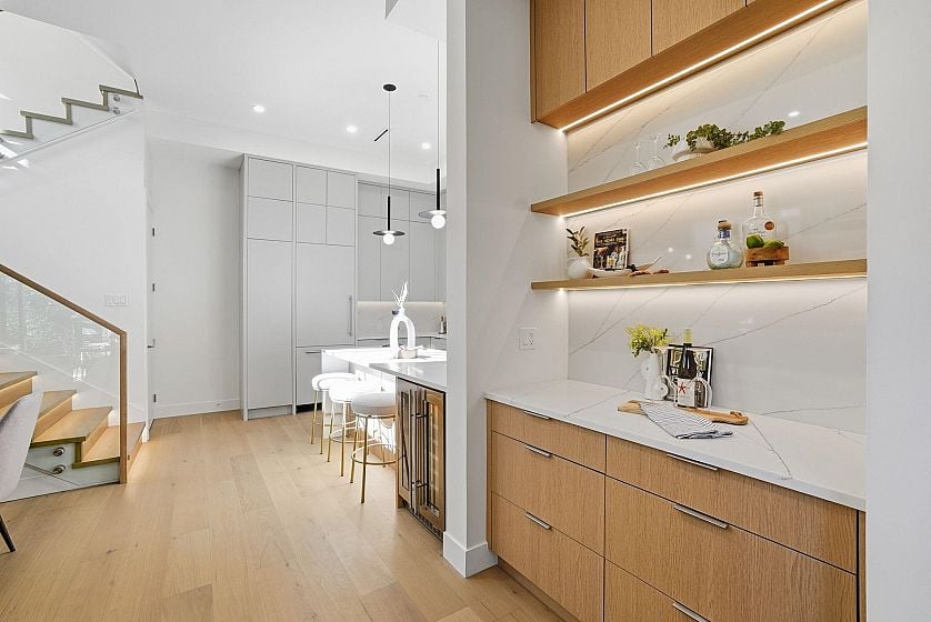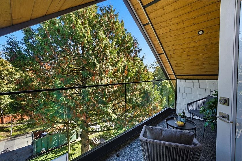 GORGEOUS/XTRA LARGE FRONT duplex located on a quiet street in the heart of Kerrisdale! SOARING 11'5" ceilings on the main floor which features high end engineered wood flooring/millwork/fireplace, bar area/wine fridge, STUNNING Kitchen w tons of storage, MEILE appliances plus custom LED lighting throughout. Upstairs you will find 10' ceilings, ample walk in closets, both bedrooms w/ Ensuites + another loft area upstairs with a 3rd bedroom/full bathroom. Additional features include a 500+sf crawlspace, security/alarm/cameras, manicured outdoor spaces, private single car garage (EV ready) plus custom black metal fencing. An EXCEPTIONAL location, walking distance from shopping, restaurants, recreation, top-notch schools and transportation!