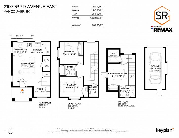 Welcome to this new back-unit triplex in Kensington–Cedar Cottage! Thoughtfully designed over 3 levels, this 3 bed, 2 bath home offers a bright, functional layout with timeless finishes. A front veranda leads to the open main floor with spacious LR/DR, designer kitchen with Fisher & Paykel appliances, farmhouse sink, plus a built-in nook with bench, shoe storage & coat closet. Upstairs has 2 bedrooms, full bath & office nook, while the top floor features a cozy primary with ensuite & Romeo & Juliet balcony. Enjoy a private patio perfect for outdoor living & entertaining. Quality finishes: A/C, radiant heat, HRV, EV-ready garage & security system. 2-5-10 Warranty included—style, comfort & privacy await!