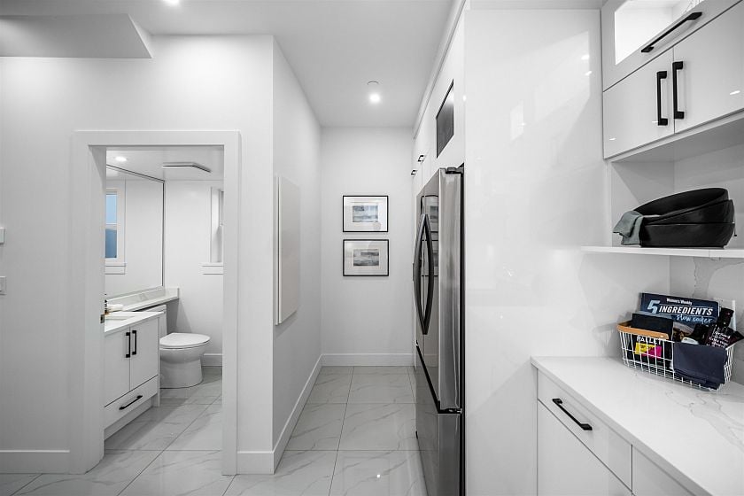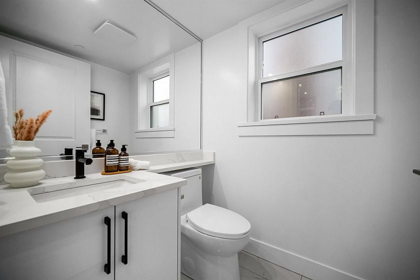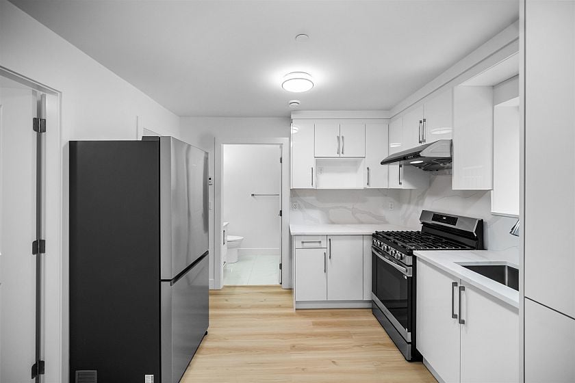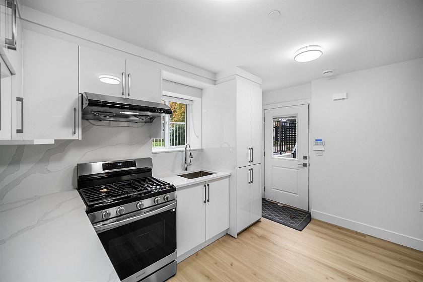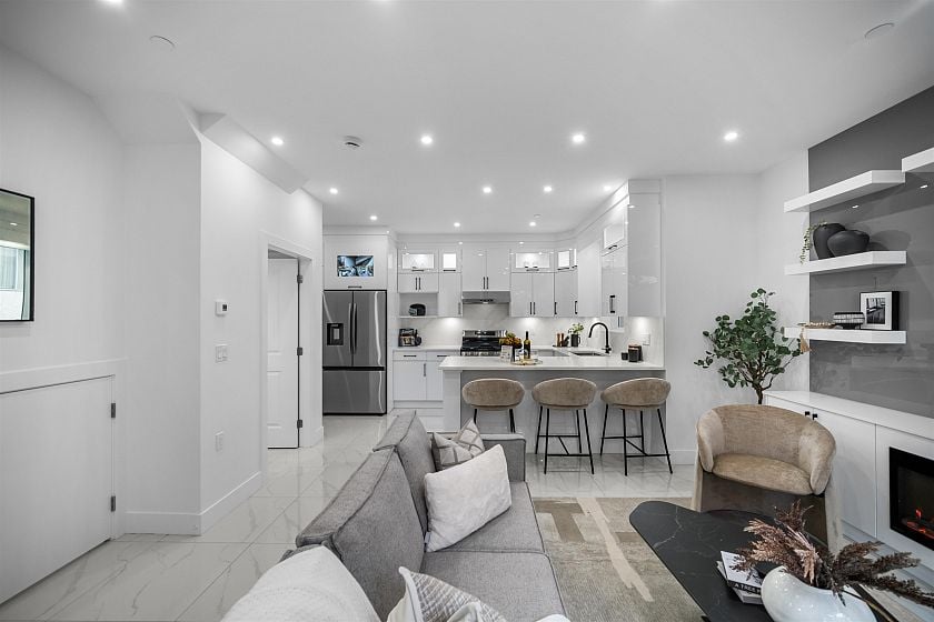 Brand-new front duplex in the heart of prime Killarney, one of Vancouver's most sought-after family neighborhoods. Thoughtfully designed with a functional and spacious layout, this five-bedroom home offers the perfect balance of comfort and versatility - complete with a two-bedroom legal suite ideal for in-laws or rental income. Enjoy modern finishings throughout, including radiant in-floor heating, air conditioning, and a full HVAC system for year-round comfort. The bright open-concept main level features elegant millwork, high ceilings, and a sleek designer kitchen with premium appliances. Steps to Victoria Drive and all your daily amenities - shops, cafes, transit, and restaurants - everything you need is right at your doorstep. Both levels of school are within walking distance.