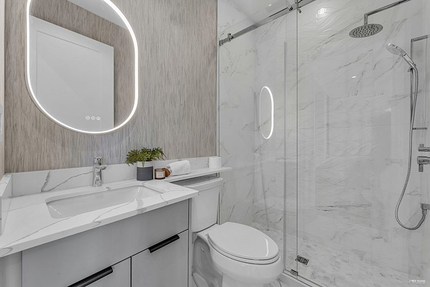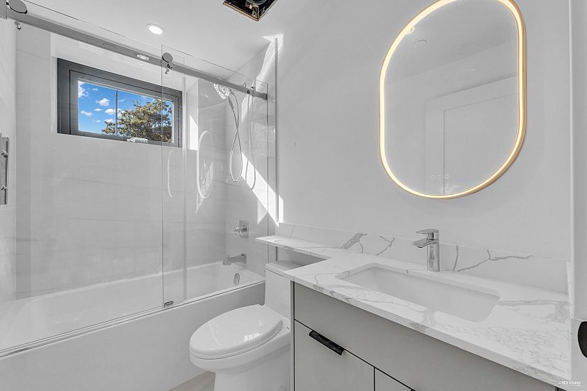 Big Price reduction! This Stunning Brand new 5 bed, 5 bath home offers over 2,100 sqft of elegant living on a bright corner lot. Designed by VictorEric. Features include white oak floors, radiant heating, A/C, HRV, security system, and EV-ready garage. Gourmet kitchen with Miele & Fisher Paykel appliances, quartz countertops, and custom millwork. Upstairs has 4 bedrooms; basement includes a legal 1-bed suite—perfect mortgage helper. Triple-pane windows, Kohler & Hansgrohe fixtures. Prime location near Arbutus Greenway, Safeway, parks, and golf. Feels like a Luxurious house with beautiful front garden and back private yard. Must see! Open house Sun Nov 30 2-4.
