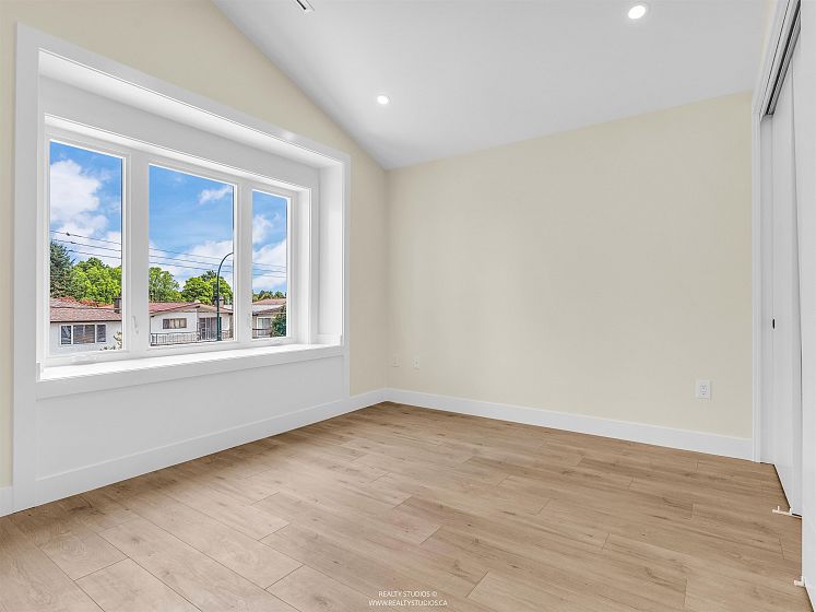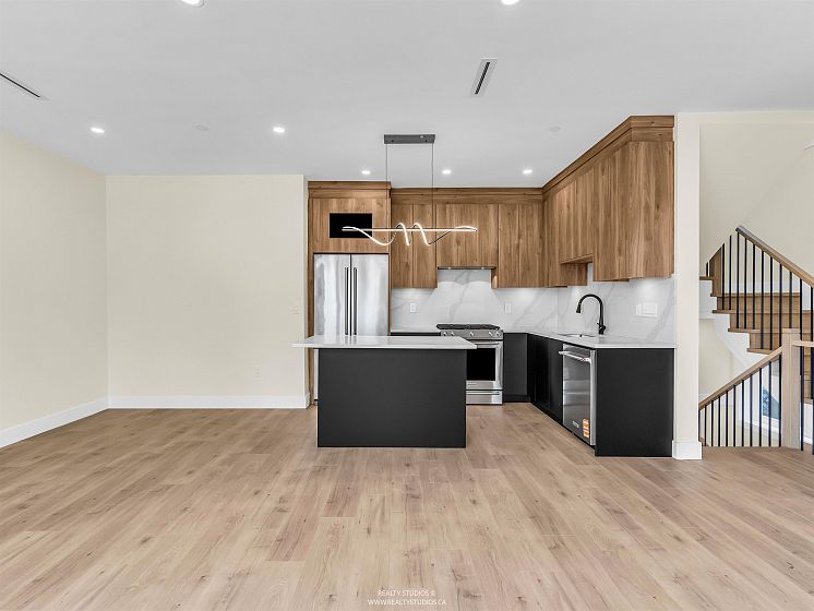 Welcome home to this brand new East Van 3 bedroom front duplex with private rear garden. Features include air conditioning & heat through heat pump; laminate flooring thruout; security alarm system; front door camera & direct access fr garage. Main level offers 9ft ceilings with spacious living area featuring built in storage, linear electric fireplace w/ TV mounting area above. Kitchen offers Kitchen Aid appliances incl. gas stove & french door fridge; quartz c/tops w/ quartz slab backsplash & kitchen island; Bedrooms offers high vaulted ceilings & built-in closets. Sgl. garage w/ EV plug. Just 1 block away is GT Cunningham Elementary & Gladstone Secondary is just 5 min. drive. Kingsway is a short stroll away with restaurants, services, & shops.