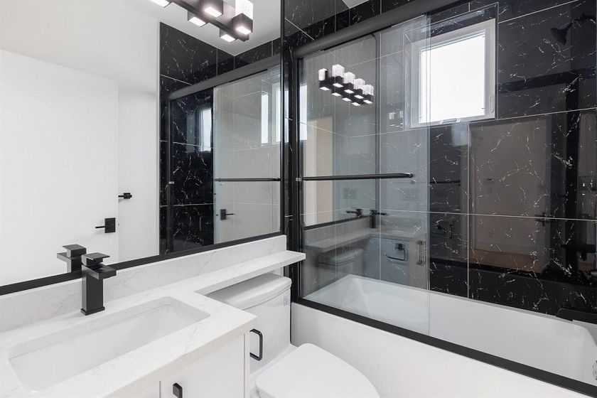 Brand New centrally located front and back 1/2 duplex features open deck leading into the main floor which features living, dining, powder room and kitchen that features quartz countertop stainless steel appliances. upstairs features 3 bedrooms and 3 bathrooms with a bonus room on the third floor that can be a rec room, office or extra bedroom. Close to parks, shopping, transit and schools.