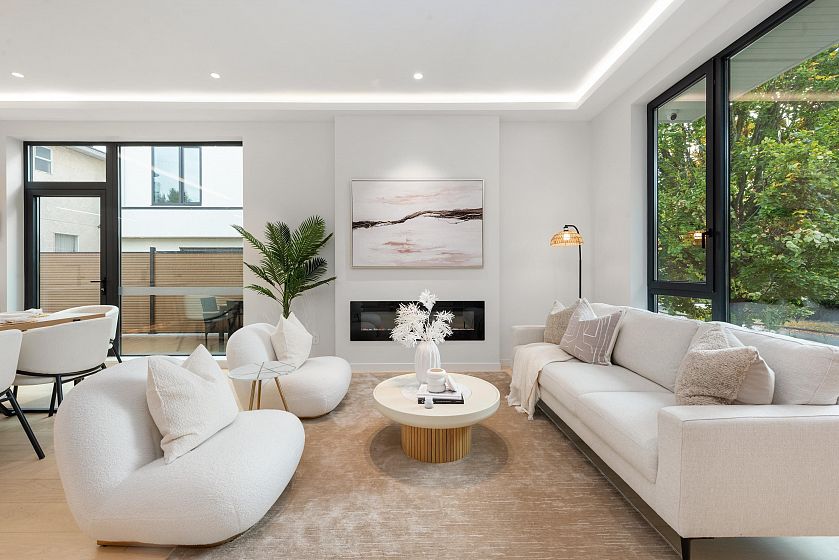 Rare opportunity to own a 2 Level duplex style home in Vancouver´s prestigious Westside. Quietly situated along Adera St & 66th Ave, Adera Arch blends contemporary design with West Coast elegance. This 3 bedroom home has a very spacious 19 ft wide floorplate that is usually only found in larger homes. The wrap around 800 square ft patio is perfect for entertaining. It also features triple glazed tilt and turn oversized window flooding the unit with natural light, Soaring 10 ft ceiling on main level and 9'8 on the second floor. Gourmet kitchen extra deep sink and matte black hardware, premium Miele and Bertazzoni appliances package, custom cabinetry.