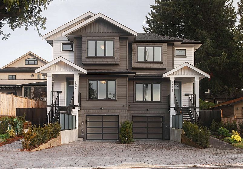 Welcome to The Greenway Collection – a rare side-by-side duplex on a 56 foot wide lot, fronting the Arbutus Greenway. This 4 bed, 3.5 bath home features an open main floor, sleek kitchen with premium integrated appliances, dual heating with heat pump and radiant floor heat for year round comfort + A/C, private fenced back yard with BBQ hook up, and lots of storage. Ideal for young professionals looking to start a family or downsizers looking for a low-maintenance lifestyle with NO STRATA FEES. Flexible bedrooms work perfectly as kids’ rooms, guest rooms or office. An attached heated garage with frosted glass doors for all your ideas. Separate basement entry allows many options for a nanny suite and Airbnb potential with close proximity to YVR and UBC. Steps to parks, cafes and top schools.