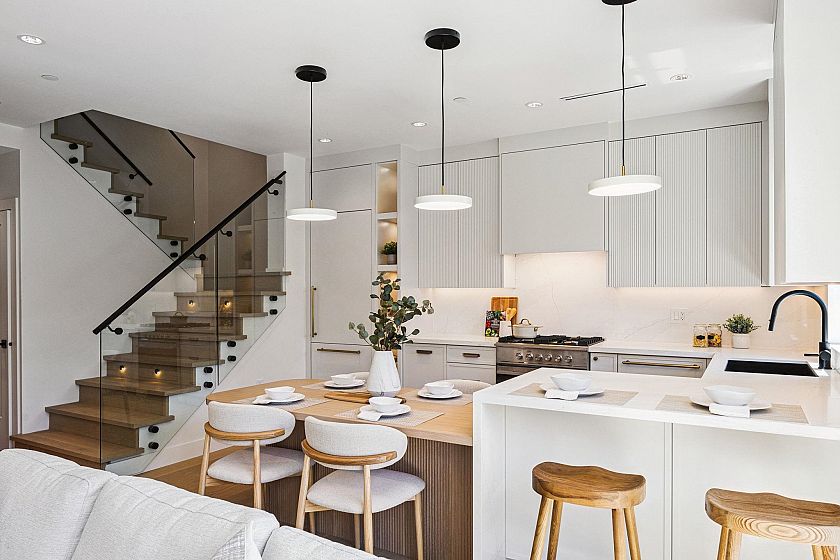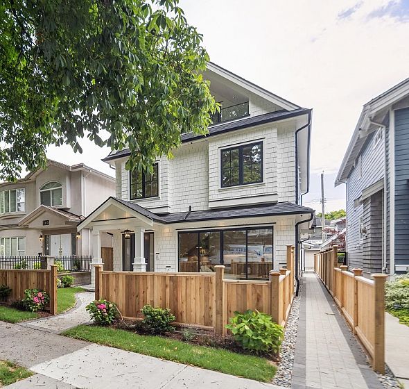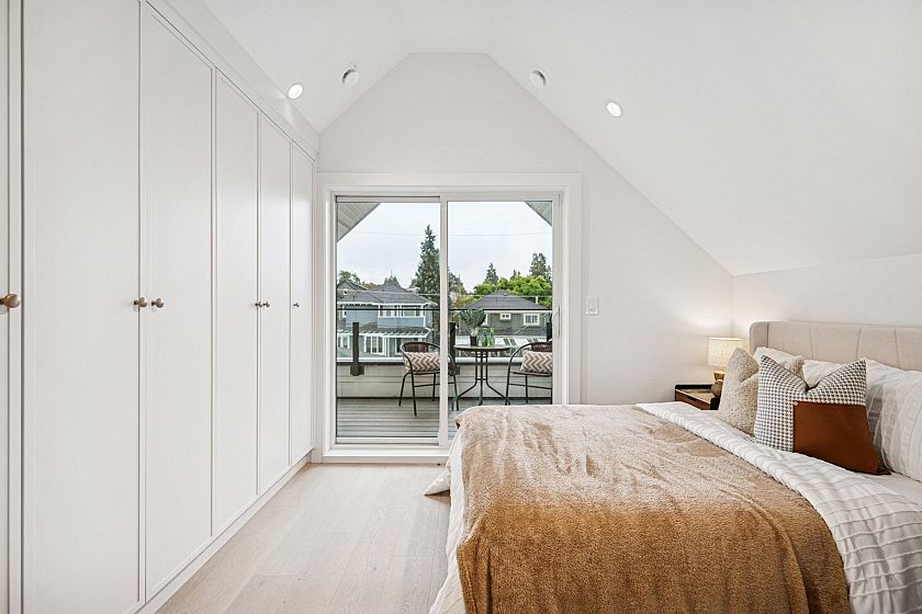 BACK UNIT SOUTH FACING DUPLEX in the Main area-3 bed, 3 . 5 bath home ftrs bright& well-designed living in one of Vancouver's top neighbourhoods . Enjoy an open layout w/custom built-in, entry closet, a dedicated dining area, custom designed modern kitchen w/ premium panel -ready appliances, breakfast bar. Large patio door leads indoor living space open to the bright south facing patio in the beautiful spacious backyard, BBQ hood-up ready . Great size master bedroom (king bed) with custom-made built in cabinet, double sinks bath. On the top floor, step out to a south covered oversized balcony for year-round use. Enjoy modern living in trendy MAIN ST-just steps from Oakridge Mall, Queen Elizabeth Park, vibrant restaurants and shopping. Extra storage on mainfloor & Heated garage for bonus!
