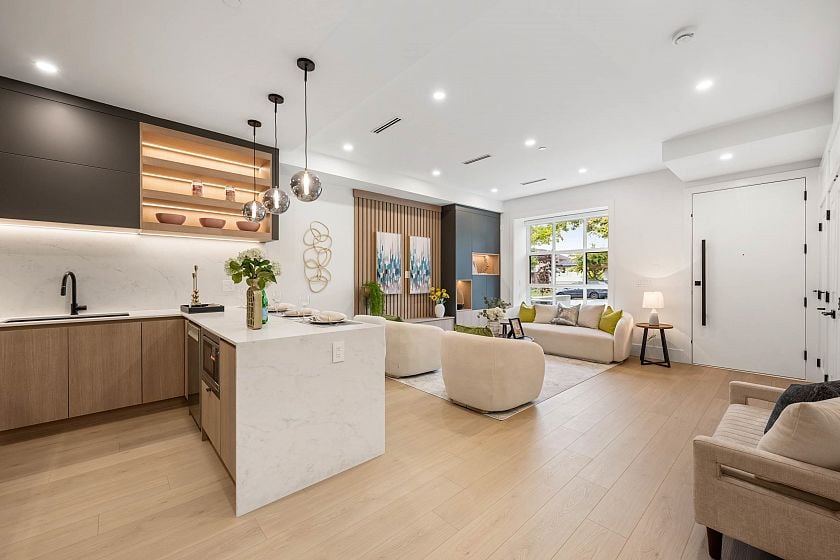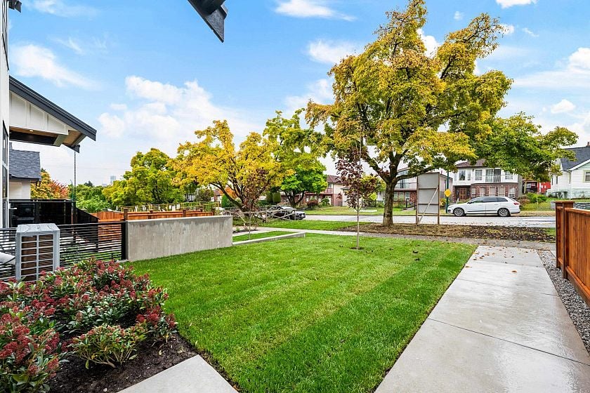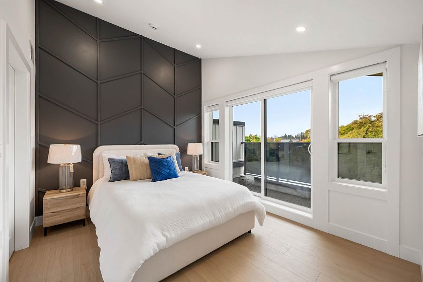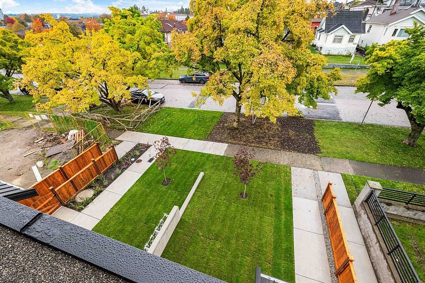 BRAND NEW 3-level FRONT UNIT in a quality-built multiplex by an experienced builder, located on a wide street in desirable Renfrew East Vancouver. Thoughtfully designed with high-end finishes and covered by 2-5-10 new home warranty. Main floor features a spacious living room with custom cabinetry, dining area, 2-tone kitchen with s/s appliances, and a FULL BATHROOM. Upstairs offers 2 generous bedrooms + full bath. Top floor features a private primary bedroom with walk-in closet, ensuite, and 2 large balconies for summer enjoyment. Includes A/C, security cameras, quartz counters, and custom tile work. Quick routes to highways and downtown. Close to T&T Supermarket & PNE. Don't miss this one-call your realtor today