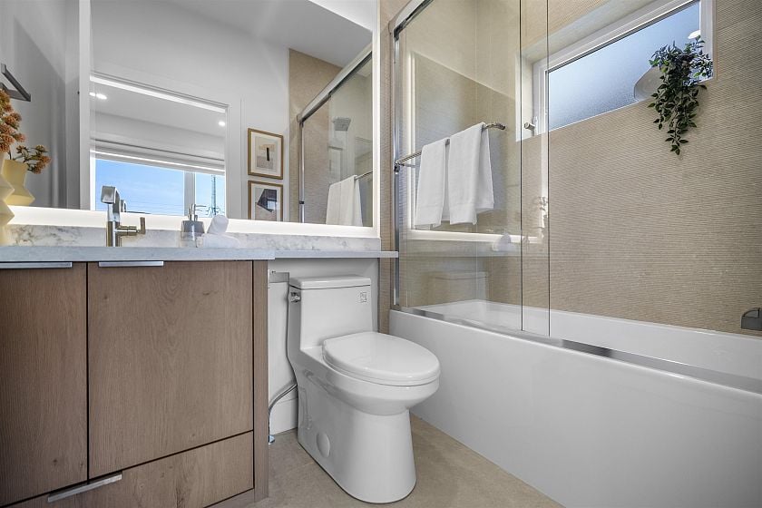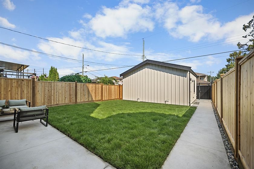 Welcome to 3563 East 25th Avenue, a stunning new back duplex by Brar Empire Homes in the heart of Renfrew Heights. This beautifully crafted 3-level home features 3 bedrooms, 4 bathrooms, and a very functional layout designed for today's lifestyle. The inviting atmosphere is enhanced by large bay windows, natural light, and seamless indoor-outdoor living that walks out to a spacious private backyard-perfect for entertaining or a safe play area for kids. Every detail has been thoughtfully considered, from air conditioning, HRV system, radiant heating, and security system to modern appliances and custom built-in cabinetry. Both front and back units include their own patio spaces and all the high-end touches you'd expect from Brar Empire Homes, a builder with a reputation for quality.