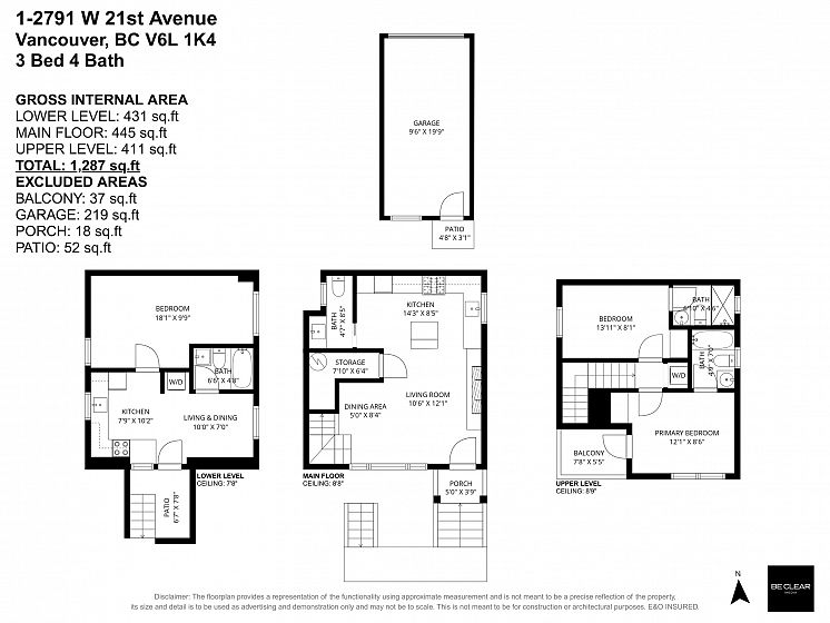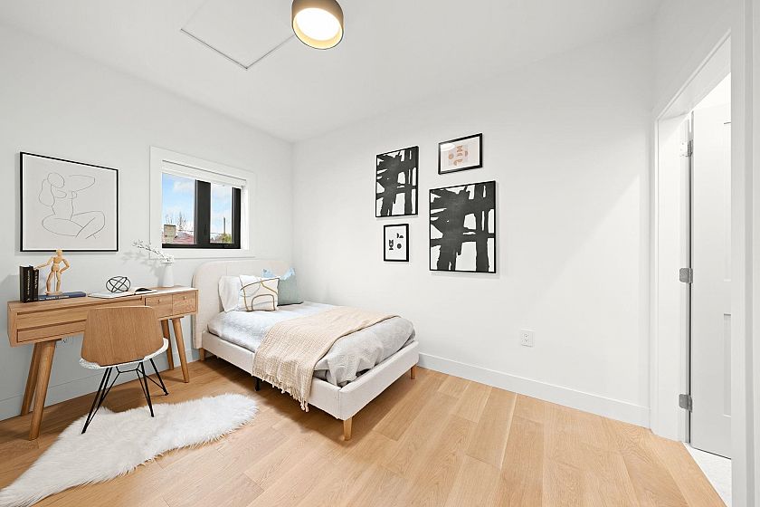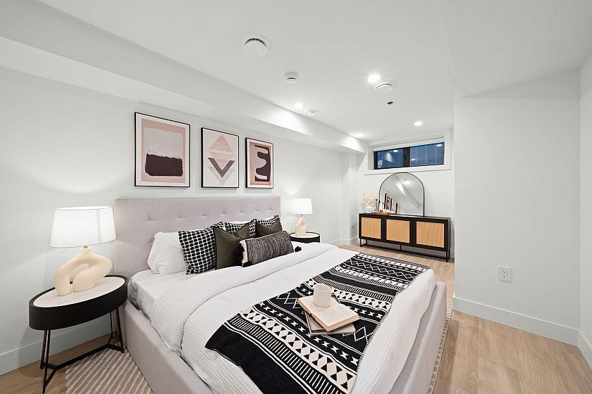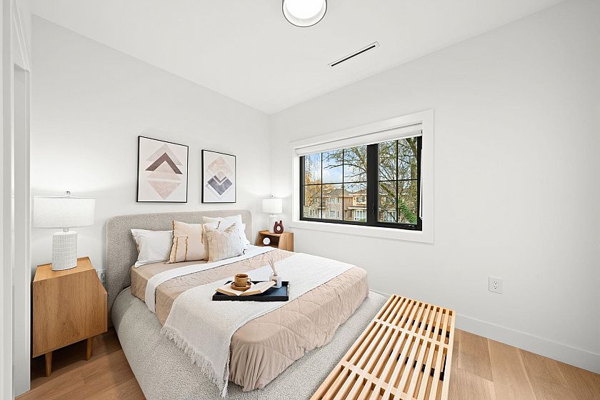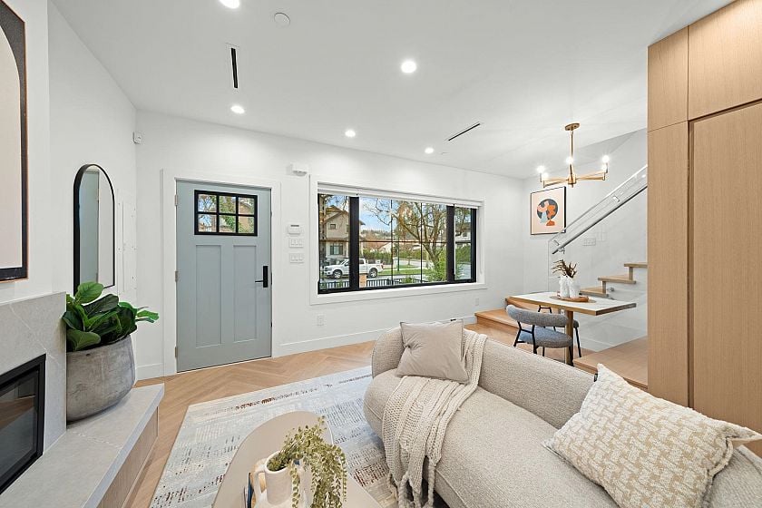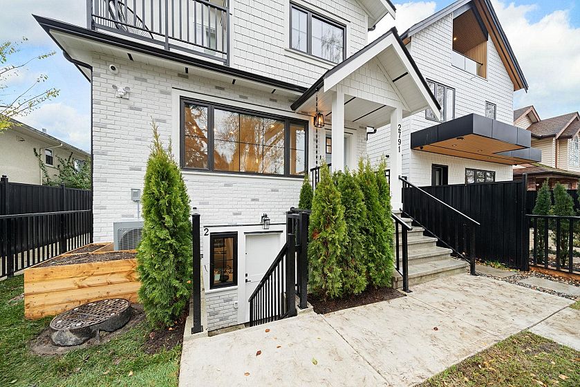 Modern design shines in this stylish 1/2 duplex in Vancouver’s desirable Arbutus neighbourhood. (Front Unit) Featuring 3 beds, 3.5 baths, an open-concept main floor with quartz countertops, brushed oak flooring, custom cabinetry with Atmosphere lighting, air-conditioning, and an electric fireplace. The upper level offers two en-suite bedrooms, including a primary with balcony. A 1-bedroom legal suite below provides great mortgage help or family use. With private fenced yard on a quiet street, this home is ideal for young and start-up families. 1 garage parking with EV charger included. Book your private showing today. School Catchment: Trafalgar Elementary & Prince of Wales Secondary & Kitsilano Secondary.