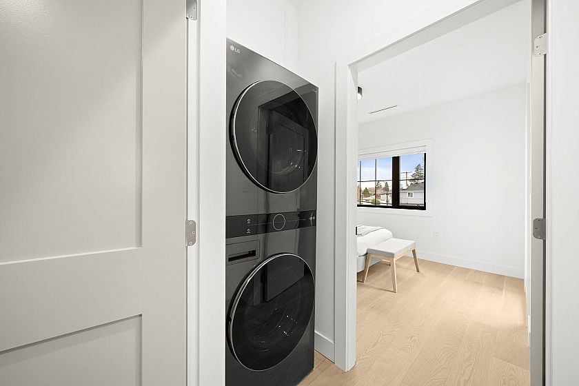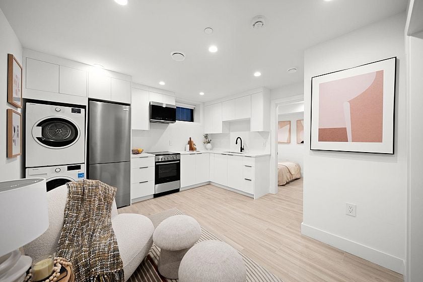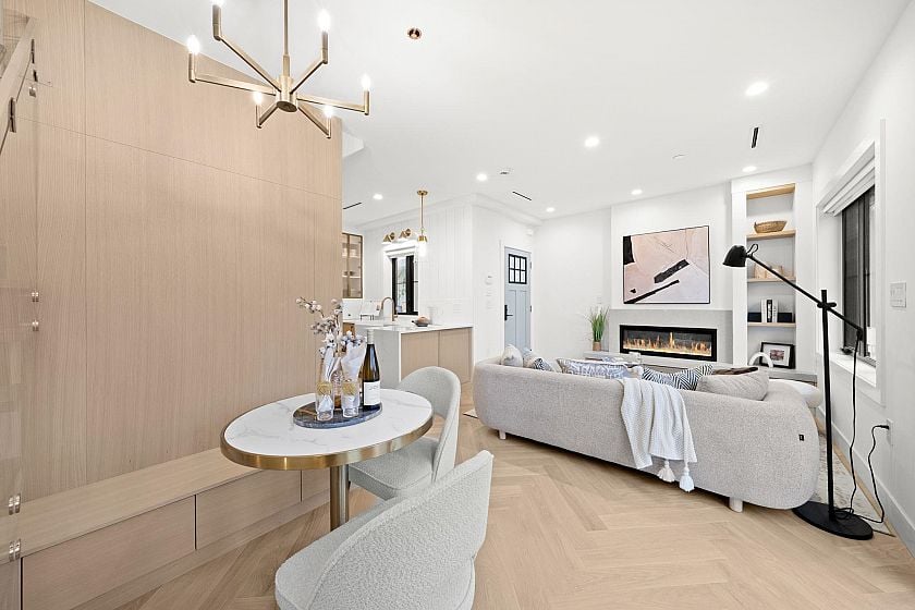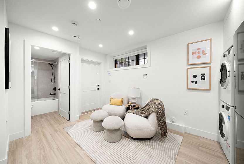 Modern design shines in this stylish 1/2 duplex in Vancouver’s desirable Arbutus neighbourhood. (Back Unit) Featuring 4 beds, 3.5 baths, an open-concept main floor with quartz countertops, brushed oak flooring, custom cabinetry with Atmosphere lighting, air-conditioning, and an electric fireplace. The upper level offers two en-suite bedrooms, including a primary with balcony. A 2-bedroom legal suite below provides great mortgage help or family use. With private fenced yard on a quiet street, this home is ideal for young and start-up families. 1 carport & 1 garage parking with EV charger included. Book your private showing today. School Catchment: Trafalgar Elementary & Prince of Wales Secondary & Kitsilano Secondary.