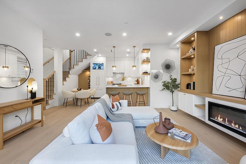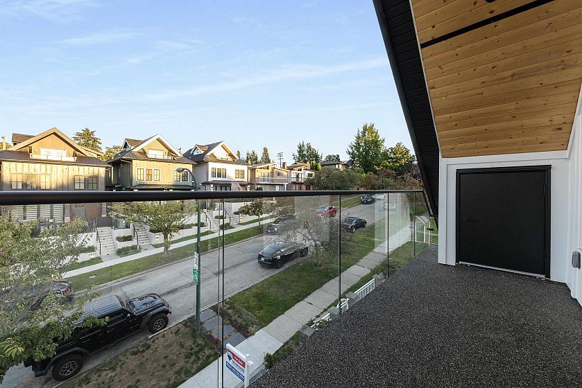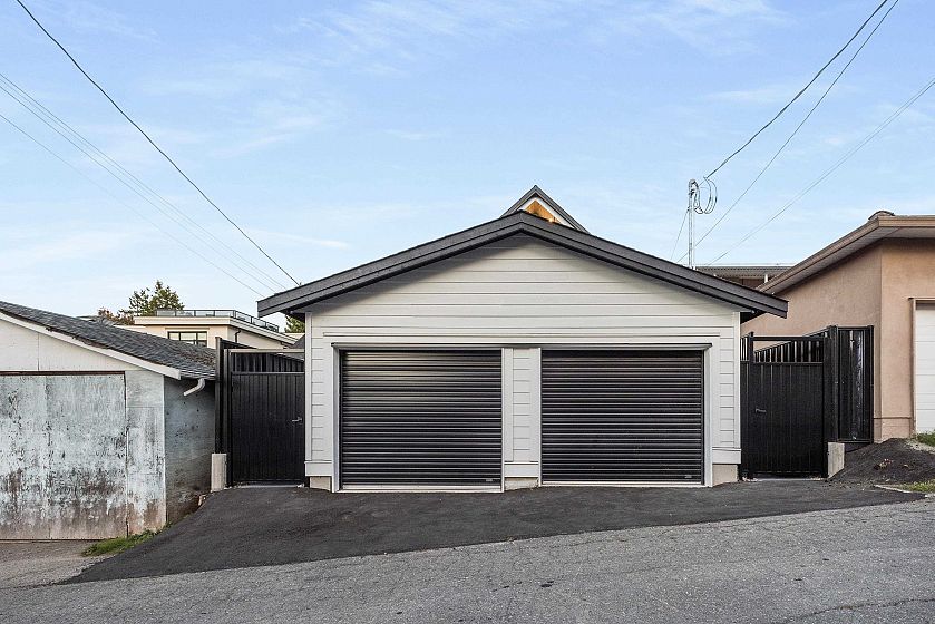 Discover modern living in this beautifully finished FRONT half duplex in East Vancouver. With 10 ft ceilings on the main floor and an open concept design, this home offers space, light, and functionality. The kitchen is equipped with Fisher & Paykel appliances, quartz countertops, and timeless color scheme. While the living room showcases a built-in entertainment centre and electric fireplace. Comfort and peace of mind come with a heat pump, forced air, A/C, alarm/security system with monitors, and built-in speakers. A single-car garage with roller-style doors, window coverings, and covered entryway complete this well-designed home. All this, just steps from Victoria Drive shops, close to Mount Pleasant, Downtown Vancouver, and with direct transit to UBC.