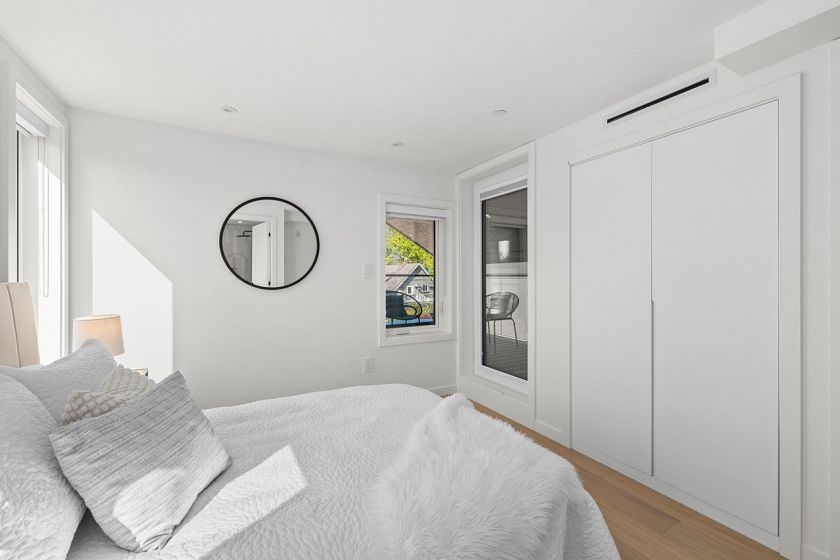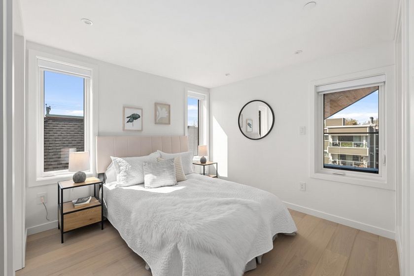 Discover refined living in this stunning 1/2 duplex by Mahnger Homes in the heart of Douglas Park! Elegant design meets luxury with warm tones, oversized windows, and brushed White Oak floors throughout. The large gourmet kitchen boasts sleek flat-panel cabinetry, quartz counters/backsplash, and premium matte white appliances. Upstairs, find the spacious primary bedroom with walk-in closet and balcony. The versatile third level offers a bedroom, guest room, or expansive family room opening to a covered deck—perfect for entertaining. Stay comfortable year-round with a heat pump for heating and cooling. Covered parking and 3 storage lockers add convenience. Steps from parks, cafes, top schools, and transit—this is urban living at its finest! Open House Sat Feb 28th, Sun March 1st 2-4pm