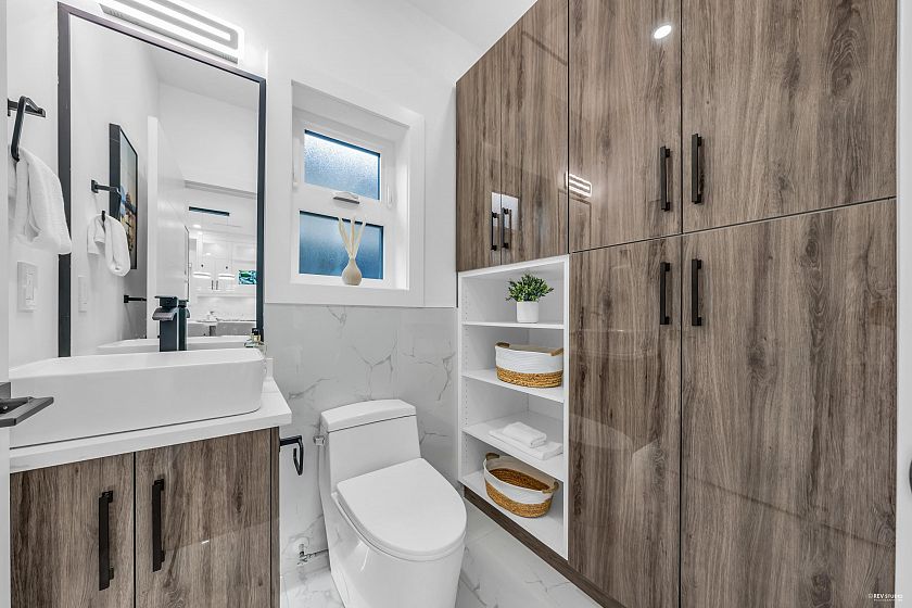 Experience contemporary comfort in this stunning 3-level back unit half-duplex by a reputable builder—no strata fees! Spanning 1,405sf, this meticulously crafted home features a functional layout with 9ft ceilings that enhance the spacious feel. The open-concept living and dining areas flow seamlessly into a gourmet kitchen equipped with S/S Bosch appliances,3ft gas stove, and a large island perfect for entertaining, all complemented by beautiful quartz countertops. Wide plank laminate floors add a touch of elegance throughout. Energy Efficient Radiant Gas Heat, AC, HRV, Single car garage(EV ready) private 300sf outdoor patio, all covered by 2-5-10 Home Warranty. Enjoy easy access to shops, restaurants, schools, parks & PNE. Short drive to DT, Nortshore & The Amazing Brentwood.