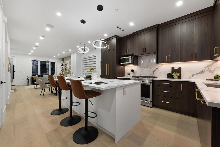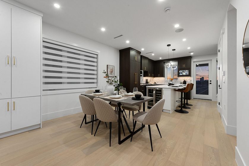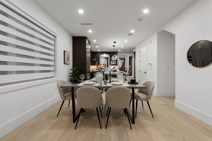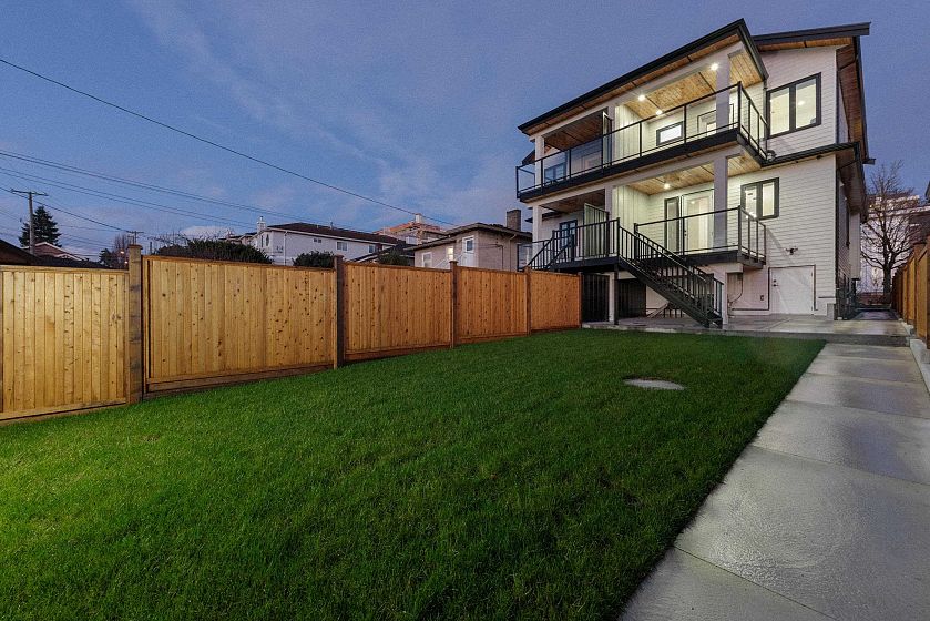 This brand new SIDE by SIDE duplex with a LEGAL SUITE sits on 144' EXTRA DEEP LOT. The main floor features an OPEN-CONCEPT layout with a cozy fireplace, engineered hardwood floors, in-floor heating, and a gourmet kitchen with integrated premium appliances and quartz countertops. Step out to an almost 12' by 12' COVERED DECK overlooking a HUGE PRIVATE BACKYARD. Upstairs offers THREE BEDROOMS on the SAME FLOOR and two bathrooms, including a spacious primary suite with walk-in shower and another PRIVATE COVERED BALCONY. The basement level includes a TWO BEDROOMS SUITE, with ACCESS FROM INSIDE and a SEPERATE ENTRANCE from OUTSIDE. Extras include A/C, CCTV, CRAWLSPACE STORAGE, DETACHED GARAGE plus CARPORT PARKING. Conveniently located near transit, schools, parks, and shops. OH Jan.25 2-4pm
