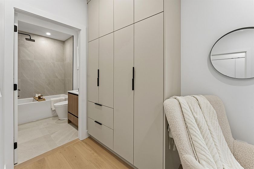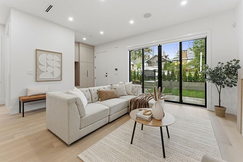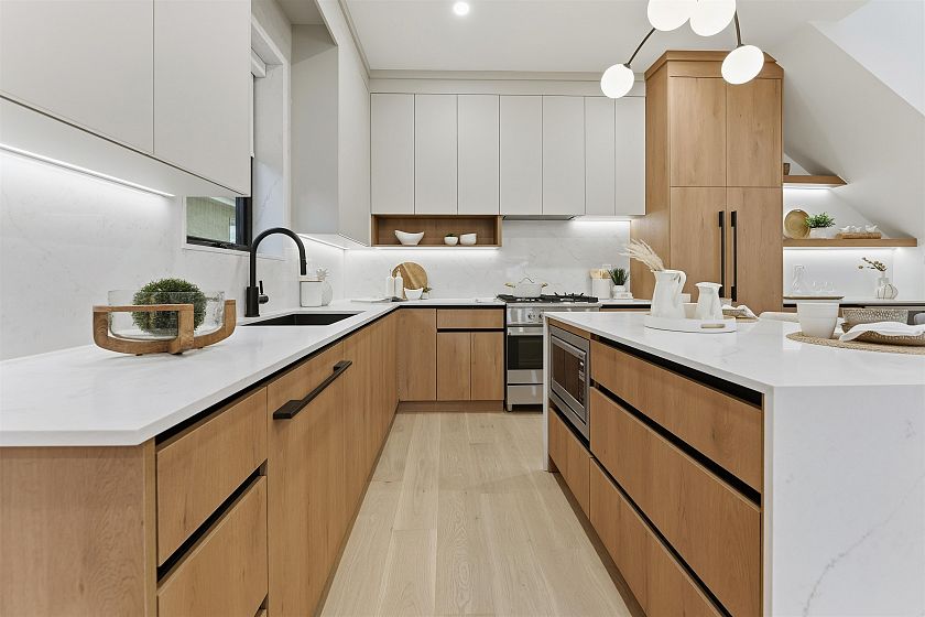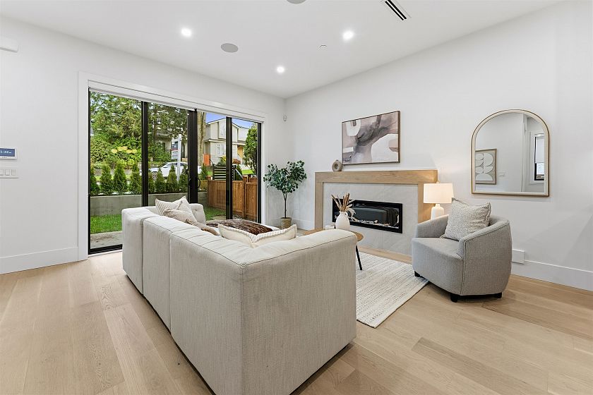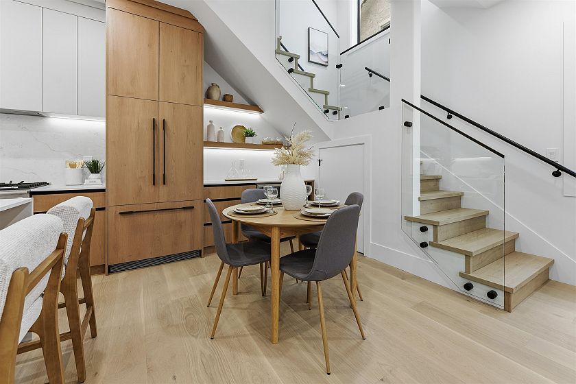 FRONT UNIT — Experience elevated living in this newly built luxury duplex located in the heart of prestigious Kerrisdale. Spanning 1,595 sq ft over three levels, this home is thoughtfully designed for modern lifestyles, featuring a seamless open concept living, dining, and kitchen space highlighted by premium finishes. Three spacious bedrooms each offer private ensuites, complemented by an additional powder room for guests. Just steps from renowned schools, charming shops, and vibrant dining, this residence delivers both elegance and exceptional convenience.