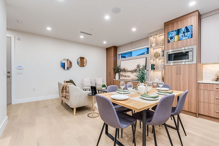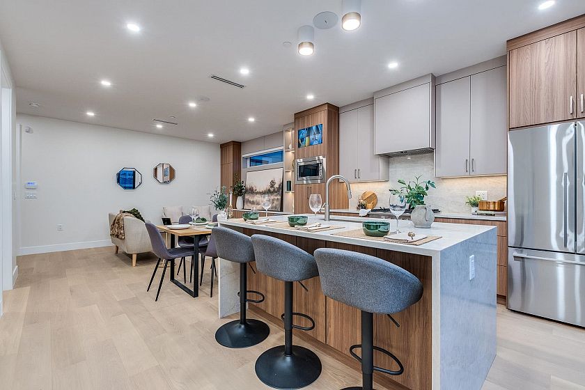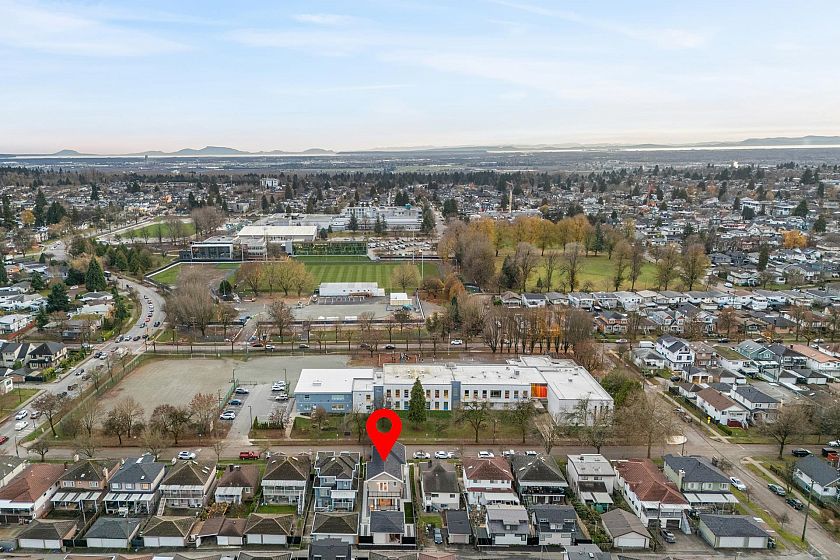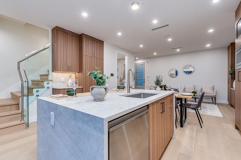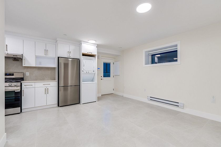 Experience modern living in this beautifully crafted 5-bed, 3.5-bath duplex in Killarney. The open-concept main floor features a chef-inspired kitchen with Fisher & Paykel appliances, quartz countertops, ample storage, custom millwork and built- ins. Accordion doors open to a covered deck and private backyard—perfect for indoor/outdoor living. Upstairs offers three spacious bedrooms, including a primary retreat with spa-like ensuite, walk-in closet, and private balcony. The lower level includes a self-contained 2-bedroom lock-off suite, ideal for family or rental income. Additional features include A/C, security cameras, and garage plus carport parking. Steps to schools, community center and close to transit, shops and amenities, this home offers convenience without compromise.