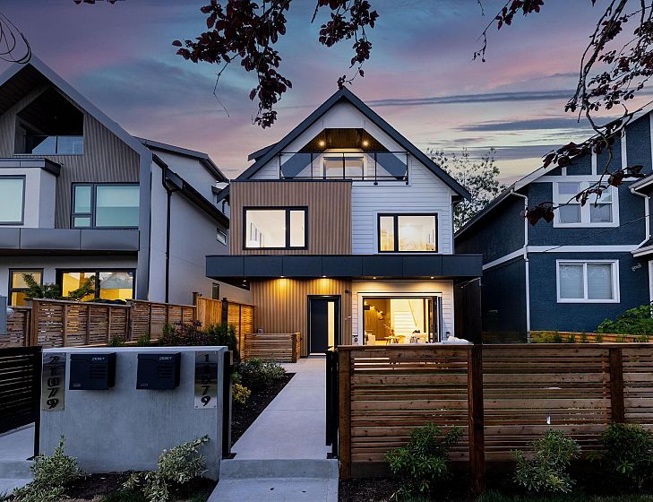 Brand-new front unit duplex in Mount Pleasant! This stylish 3 bedroom, 3.5 bath home offers 1,462 sq ft of thoughtfully designed living space across three levels. Step inside to a bright open-concept floor plan featuring hardwood floors, elegant finishes, & a stylish kitchen w/gas range, quartz countertops & custom cabinetry, & accordion patio doors for seamless indoor-outdoor living. Upstairs, two bedrooms w/ its own ensuites perfect for growing families. The top-floor boasts a private retreat w/ a full ensuite and balcony. Located on a quiet tree-lined street, steps to Charles Dickens Annex, Clark Park, Trout Lake, Commercial Drive, & transit. Enjoy the comfort and functionality of modern living in a sought-after neighbourhood!