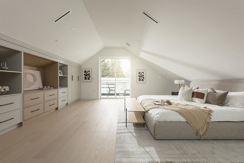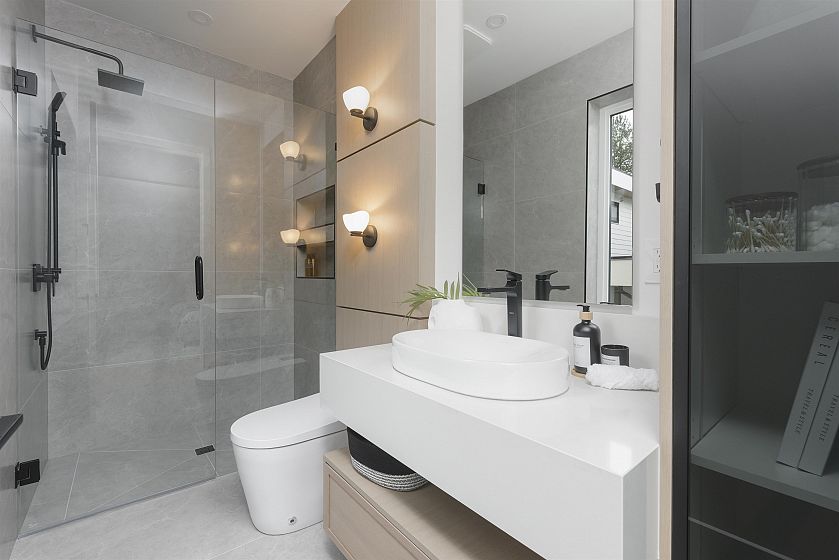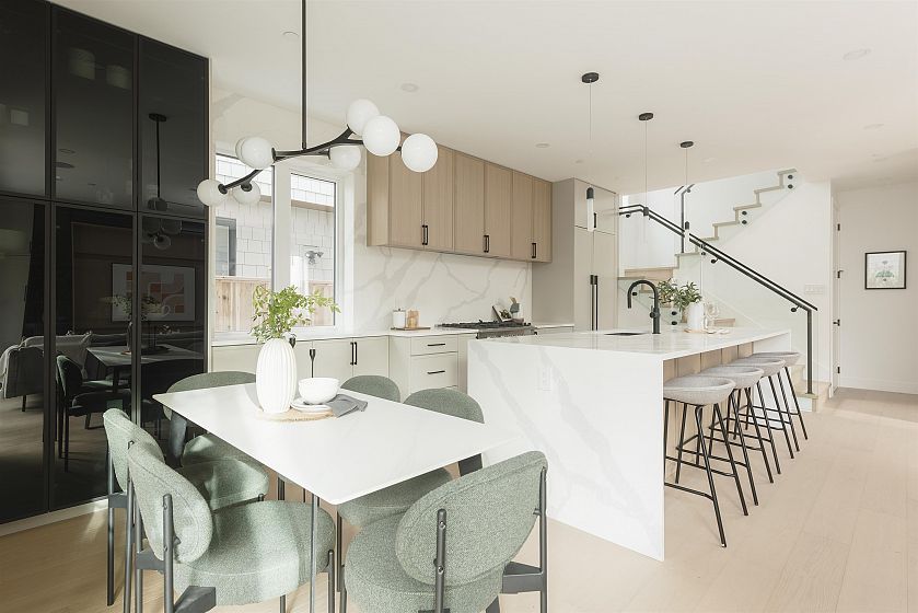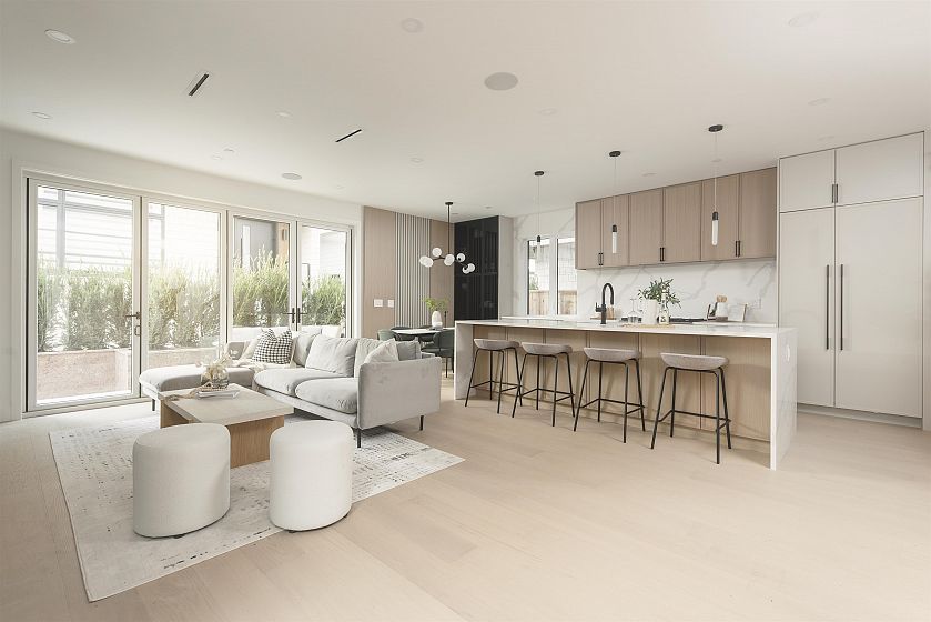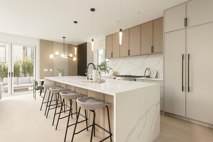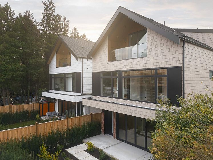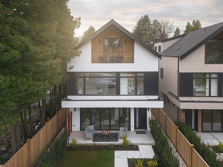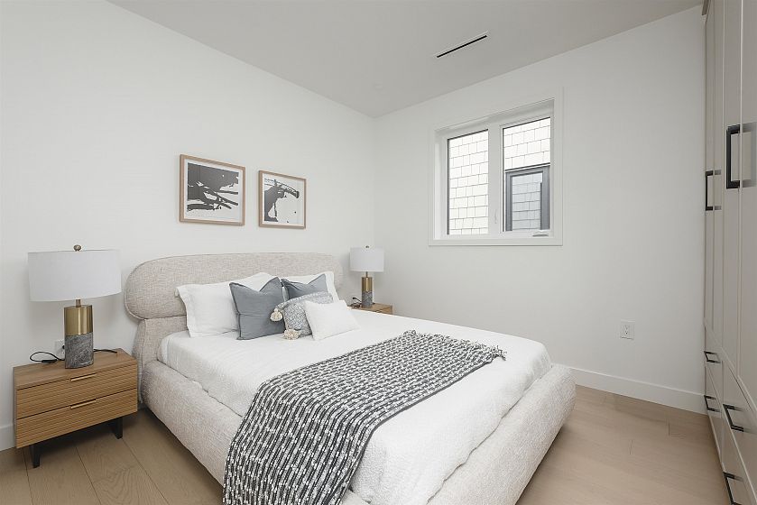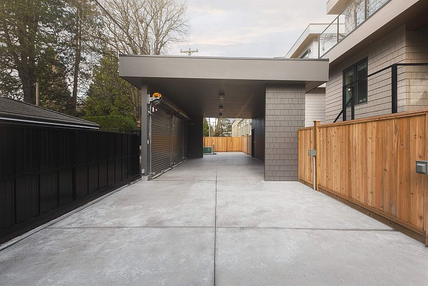 Back 1/2 duplex in desirable South Granville offering over 2,000sf, 4 bedrooms & 3.5 baths across expansive 3 levels. Designed to live like a detached home with a spacious island kitchen, full dining area & expansive living space. Eclipse doors open to a large private patio & yard for seamless indoor-outdoor entertaining. Upstairs features 3 generous bedrooms including a house-sized primary with walk-in closet & spa-like ensuite. The massive top floor offers over-height ceilings, a private balcony & flexibility to use as a 4th bedroom, office, gym or media room. Radiant heat, A/C, Google Nest, built-in speakers & secured parking provide modern convenience. Exceptional location near parks, shops, cafés & transit, with easy access to Kerrisdale, Oakridge & downtown.