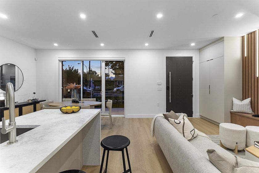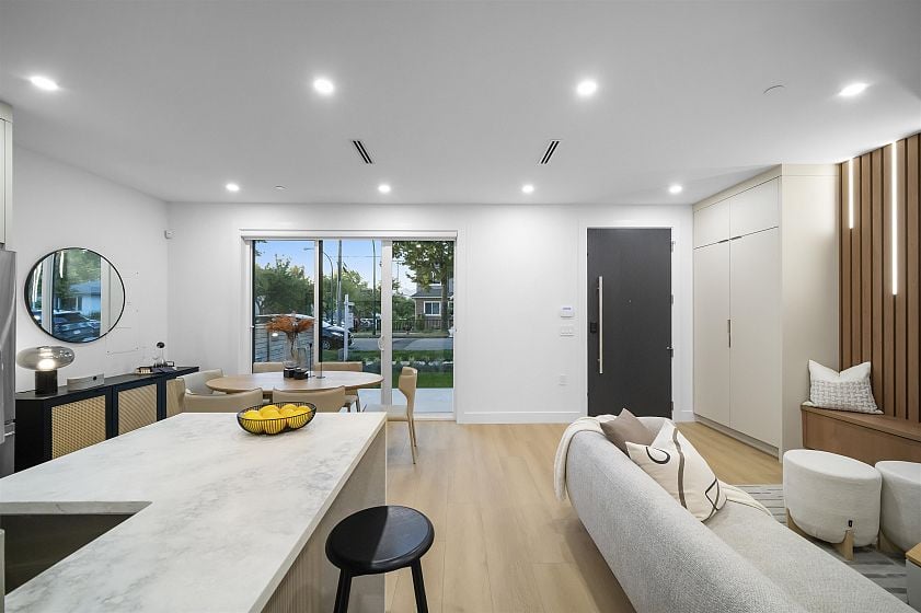 Welcome to 2386 E 45th Ave in Killarney - a brand-new front duplex residence by Brar Empire Homes. Crafted with exceptional attention to detail by one of Vancouver's most recognised builders, this beautifully designed 3-level home offers 3 generous bedrooms and 4 bathrooms with a spacious open-concept layout and patio space! Large bay windows fill the house with natural light, while modern finishes and quality craftsmanship set a new standard for the neighbourhood. Perfectly situated in the heart of Killarney, you'll love the unbeatable convenience-steps to schools, parks, community centres, and easy access to transit. Just minutes from shops, restaurants, and major routes, this location combines family-friendly living with city convenience.
