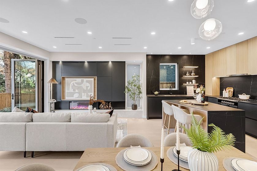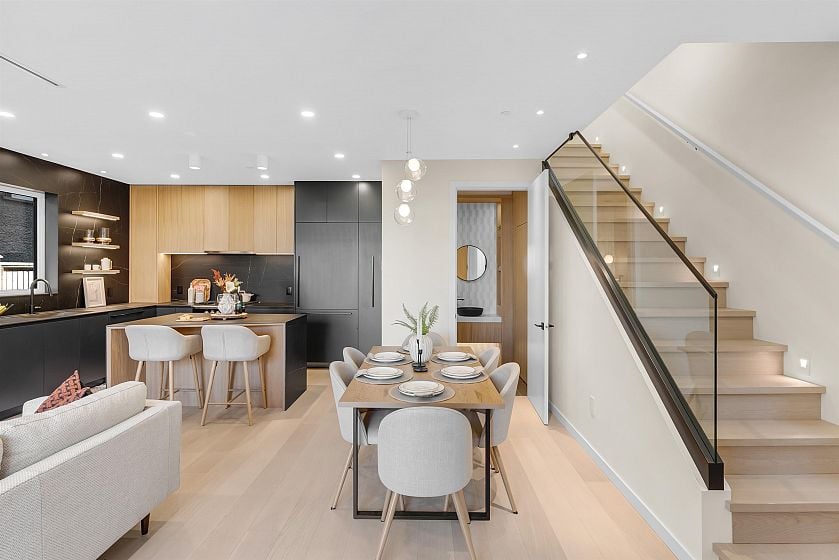 Experience exceptional craftsmanship in this Kitsilano front duplex. Every finish feels elevated and carefully thought out. Enjoy custom millwork, curated designer lighting, a bold island and premium integrated appliances. Live in year-round comfort with radiant in-floor heating, A/C, and a gas fireplace while enjoying a built in office nook that adds refined function. This home integrates indoor-outdoor living with folding glass doors leading to your private yard. Take advantage of a detached garage, and a crawl-space spanning the area of the main floor. Don't miss out on living in Vancouver's most desirable neighbourhood with Carnarvon Elementary, Kitsilano Secondary, and UBC just blocks away. OPEN HOUSE SAT & SUN 2-4