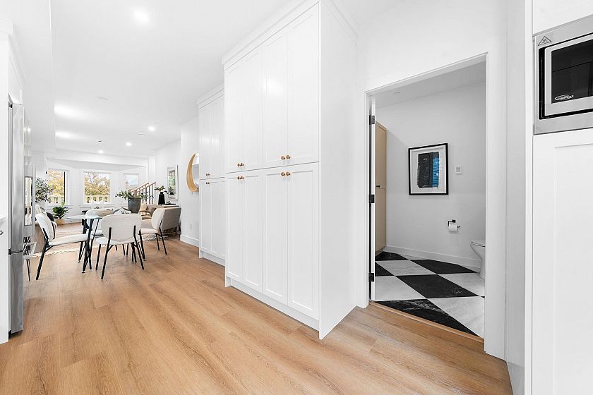 Where craftsmanship tells a story. 2528 McGill captures the soul of old-world architecture, revived with thoughtful, modern design. Sunlight spills across hand-finished millwork and imported Turkish tile, creating warmth and quiet sophistication. Triple-glazed windows deliver best-in-class insulation and soundproofing, while build quality rises far above the usual spec such as air con/heated floors plus this is a home made to last! Upstairs, three bedrooms rest on one level, a rare and practical luxury for family living. Outside, Hastings Sunrise hums with creative energy, and the soon-to-be 10,000-seat open-air amphitheatre promises culture at your doorstep. Backed by the 2-5-10 New Home Warranty. Eligible for partial GST rebate.