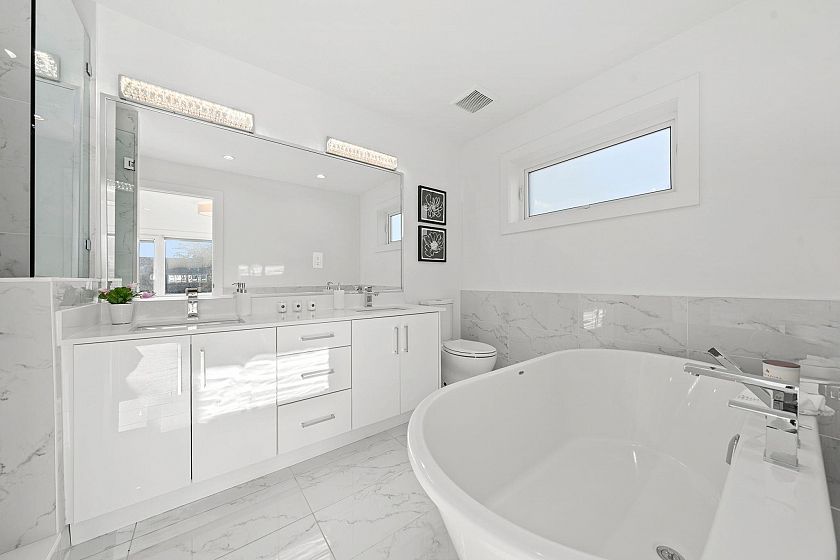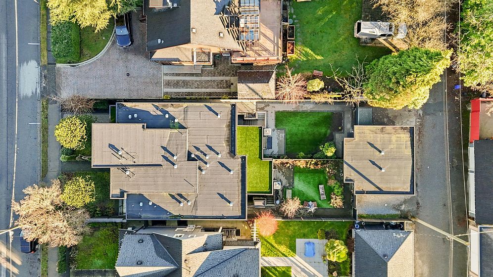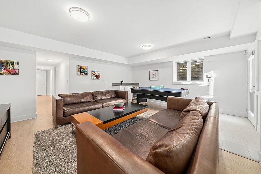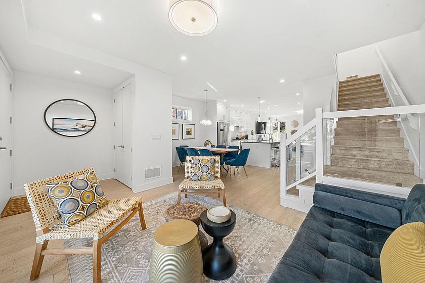 Beautifully crafted 1/2 duplex by award-winning Bolder Homes, ideally located in Central Lonsdale. Over 2,700 sq ft of refined living across three levels, featuring a bright open-concept design, gourmet kitchen with Bosch appliances, stone counters, oversized island, hardwood floors, and gas fireplace. Five bedrooms and four bathrooms, including an elegant primary suite with walk-in closet, heated tile spa-like ensuite, and convenient upstairs laundry. Premium comforts include a heat pump, AC/HRV, hot water on demand, and alarm system. South-facing fenced yard with covered patio, plus a versatile lower level with separate entry. Enclosed garage and lane parking. Steps to Lions Gate Hospital and Lonsdale amenities. Like new, no GST.