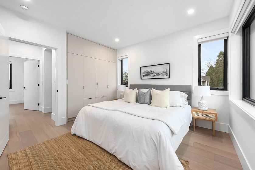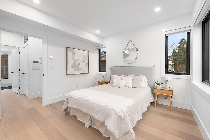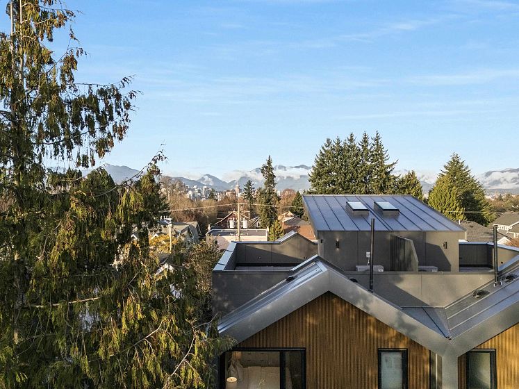 Crafted by Vandwell Developments, this brand-new 4 bed, 4.5 bath 1,969sqft side-by-side half duplex in coveted Cambie Village pairs refined design with effortless indoor–outdoor living. A panoramic private rooftop deck captures sweeping mountain, skyline views and sunsets. Floor-to-ceiling windows flood the main level with light and open to 2 secured patios, perfect for entertaining. Inside, seamless glass railings, built-in sound and a sleek chef’s kitchen create a calm modern backdrop. Upper bdrms enjoy treed and city outlooks, while a heated crawl space offers exceptional storage. All on a quiet, tree-lined street steps to shops, parks, restaurants, Canada Line, plus top public and private schools. Open House SAT FEB 28 1-3pm
