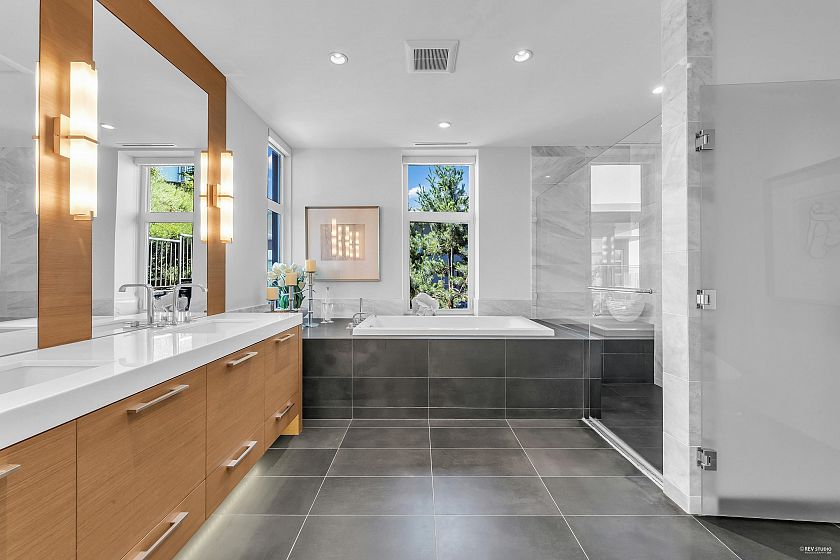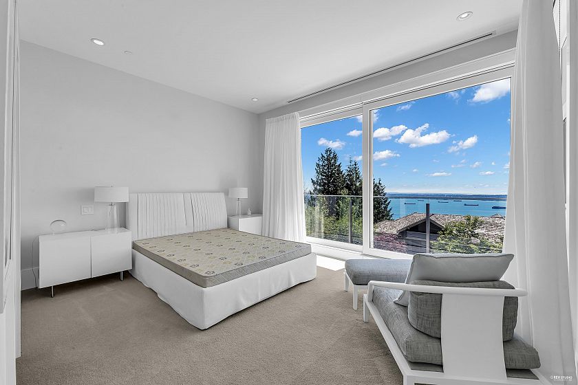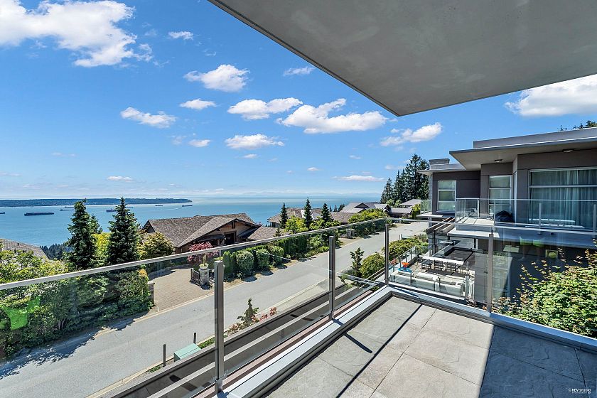 Situated in West Vancouver's most exclusive Ashton Hill Community, Panoramic city and Ocean views, outstanding designed semi-detached residence was constructed by reputational builder, British Pacific Properties. Luxury house includes high-quality standard a/c, private elevator and concrete construction. The main floor offers modern kitchen high-end appliances (SubZero, Wolf, Miele),direct access to south facing patio with ocean and city views. The upper level offers 2 bedrooms, with primary bedroom featuring sitting room, spa-like ensuite bathroom, walk-in closet & private deck. The lower level includes natural-light bedroom and full bathroom, good-size storage room & spac side-by-side garage. Close to Collingwood & Mulgrave Private school and new developed Cypress Village.