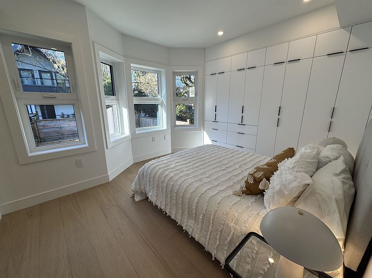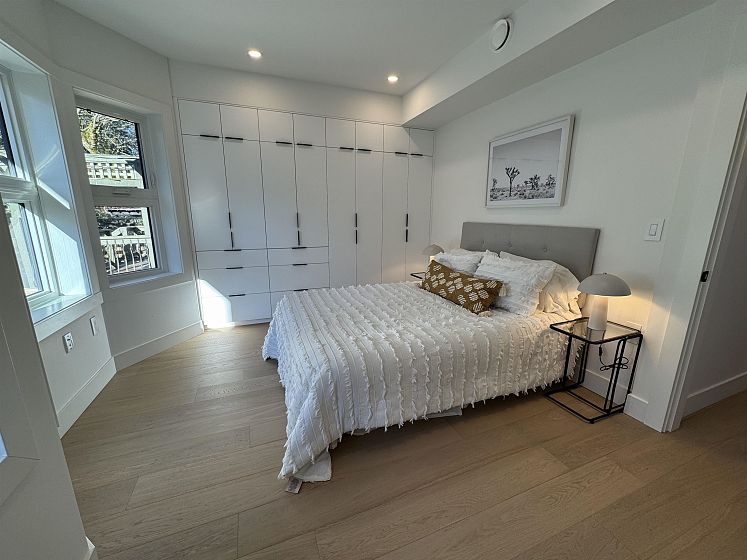 A rare blend of elegance and comfort, this 4 b/r, 4 bath home steps to Trout Lake is built to the highest standards—one recent buyer noted the “high-end appliances, specs and millwork like this aren’t commonly found in East Van homes” and praised the functional layout and lifestyle. The main floor offers a chef’s kitchen with Italian Bertazzoni appliances, solid wood cabinetry, water island and quartz counters/backsplash with ample space for dining and relaxing, plus a private garden oasis with wrap-around bench seating and guest room with full bath. The 2nd level features 2 beds including primary bed w/ ensuite, built-ins, walk-in closet & bay window. Upstairs a dreamy office/flex with full bath, deck and beauty views! EV Ready parking, 2 bike lockers, full warranty & much more!