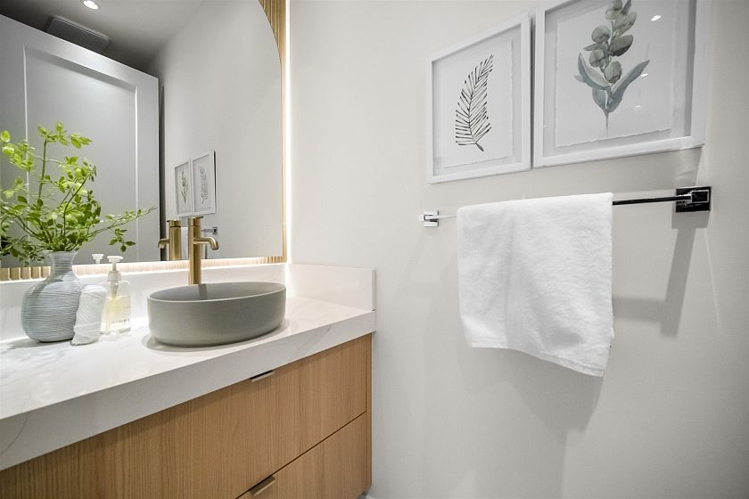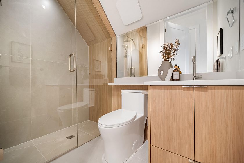 Experience unparalleled luxury in this brand-new corner 1/2 duplex in coveted Kensington/Cedar Cottage, completed in collaboration with a highly esteemed interior/exterior expert. Wrapped in natural tones with refined exterior stonework, this home features 3 bdrms each with a spa-inspired ensuite plus 3.5 baths and a sophisticated open layout. Highlights include Fisher & Paykel appliances, quartz countertops, custom cabinetry, hardwood floors, radiant heat, A/C heat pump, HRV and a fireplace. LED ambient lighting enhances key spaces. Approx 23' x 11' cemented patio and fully fenced yard extend outdoor living. Top-floor sanctuary boasts soaring ceilings and a private balcony with breathtaking downtown Vancouver views. A detached EV-ready garage completes this impeccably crafted residence.