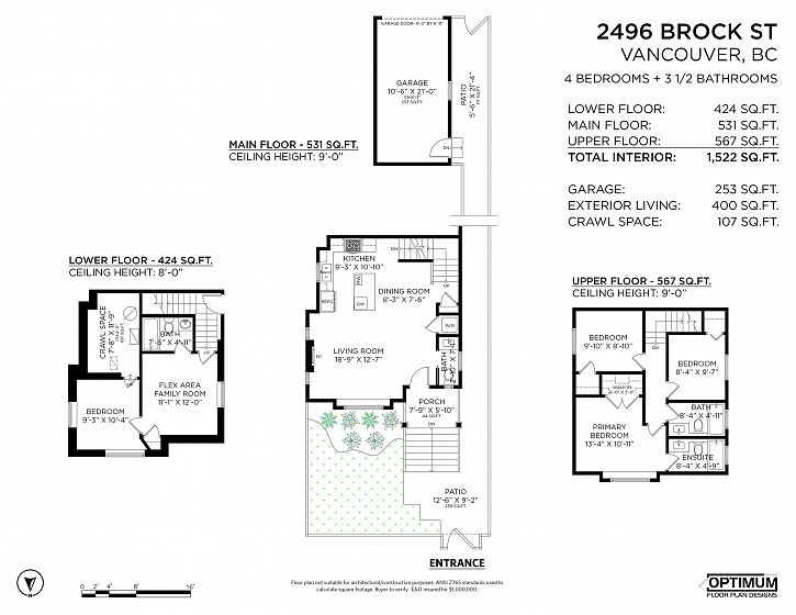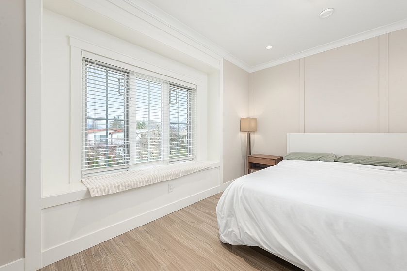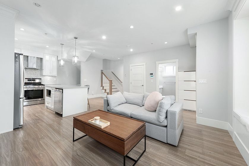 This beautifully designed 1/2 duplex offers 4 bedrooms, 3.5 bathrooms, and 1,522 sq ft of bright, contemporary living across three levels. The main floor showcases a stunning white kitchen with quartz countertops, stainless steel appliances, custom cabinetry, and a large island ideal for entertaining. Open living and dining areas are complemented by high ceilings, wide-plank flooring, and abundant natural light. Upstairs features a spacious primary bedroom with ensuite plus two additional bedrooms. The lower level includes a flex/family room and bedroom with excellent potential for a mortgage-helper suite. Complete with a private patio, garage, and quality finishes throughout, this move-in-ready home offers exceptional value and versatility.