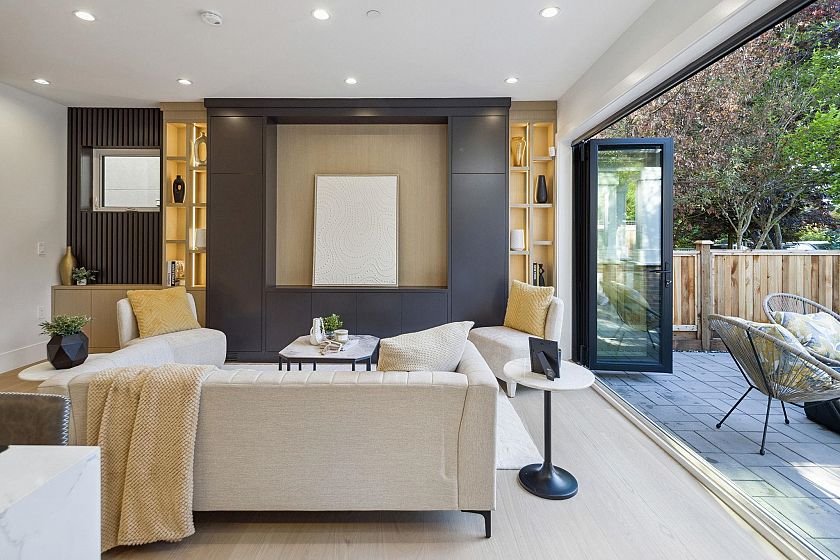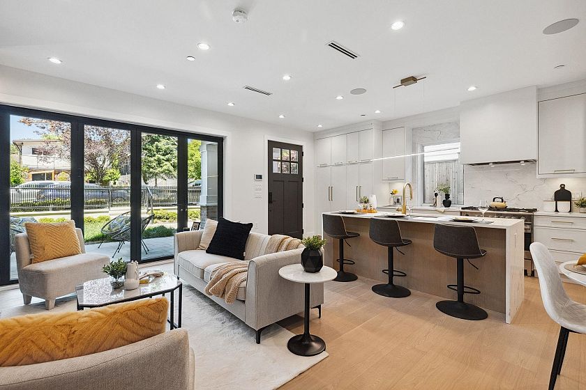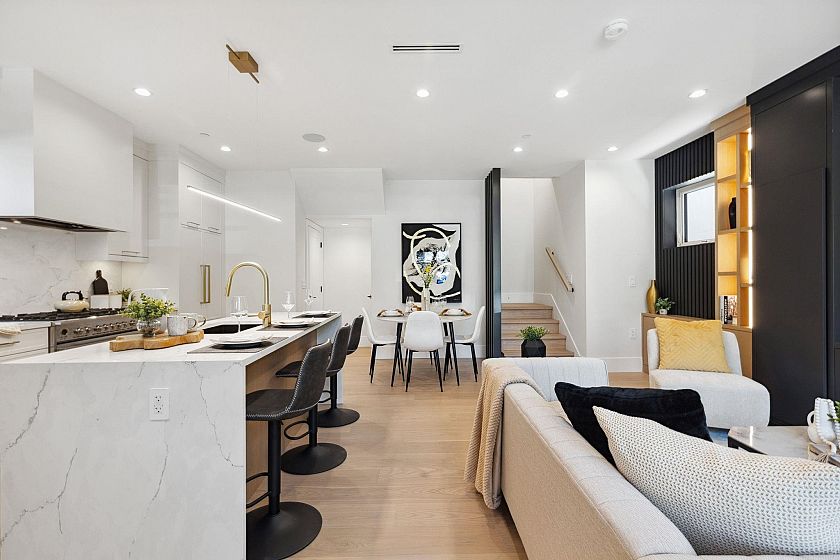 Experience elevated East Vancouver living in this brand-new front duplex, designed for the Trout Lake lifestyle & nestled in the heart of Grandview-Woodland. Built by Encore Collection w/a focus on quality & comfort, this 3-bedroom, 3.5-bathroom home offers 1,691 SQFT of thoughtfully crafted space. The open-concept main floor seamlessly connects to the outdoors through accordion-style doors that lead to a private patio—ideal for entertaining or everyday enjoyment. Premium features include high-end Fisher & Paykel appliances, built-in speakers, air conditioning, & modern designer finishes throughout. Live just moments from the vibrant energy of Commercial Drive, the serenity of Trout Lake, & the convenience of transit & top-rated schools.