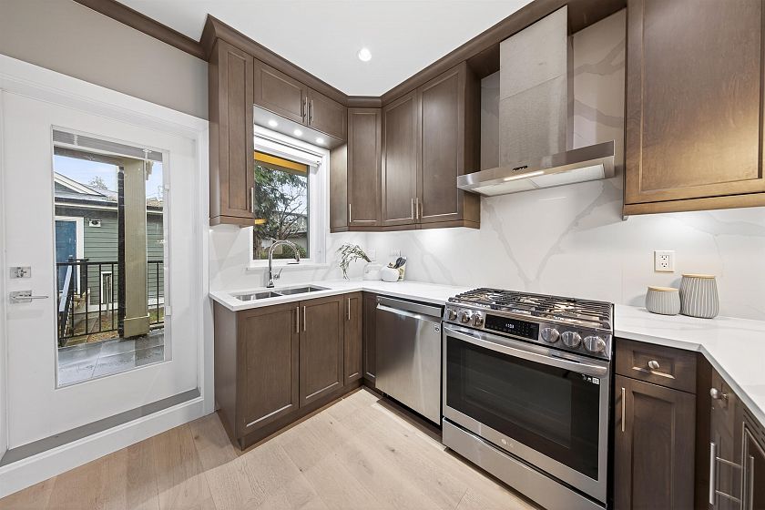 Gorgeous custom built executive side by side half duplex in South Granville neighborhood. located on a famous quiet, tree-lined street ANGUS DR. This 5 bed 5 bath (SOUTH WEST EXPOSURE)home features a legal 1-bed suite w/ separate entry, ideal mortgage helper. Designer kitchen and marble-finished baths, open layout for entertaining, and gas-fired radiant heat (low cost, efficient vs. electric). Bonus EXTRA PARKING SPOTS&145 sqft crawl space for storage, Attic Level bedroom also ensuite full bath, covered BBQ porch, stone exterior, and private paved patio. Features include HRV, security cameras, Cat 5 wiring, built-in vacuum. Walk to Magee, Maple Grove, community centre,pool, library, shops, bank,Save-On & restaurant.Direct bus route to UBC, Langara College and downtown.