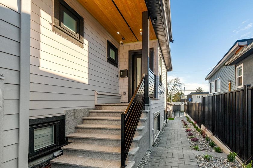 A great opportunity to own a beautifully crafted rear-unit half duplex in one of East Vancouver’s most connected and scenic neighborhoods. Thoughtfully designed and built with exceptional attention to detail, this home offers modern comfort, energy-efficient systems, and breathtaking views stretching across Richmond, the Fraser River, mountains. Upper Level – Bright & Functional Family Living 3 spacious bedrooms designed for comfort and privacy 2 full bathrooms featuring contemporary fixtures and quality finishes Large windows capturing natural light and stunning outlooks. Main Level – Modern Living at Its Best Open-concept living room with elegant finishing and premium craftsmanship Contemporary kitchen with sleek cabinetry,3 bedrooms legal suite! A/C and too much to list...