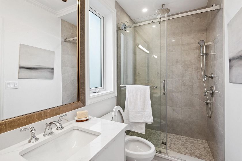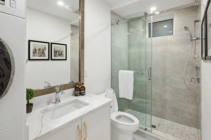 This front unit duplex boasts a secondary suite and a well-designed layout that optimizes living space. The kitchen is outfitted with built-in appliances. Upstairs, you'll find two bedrooms, each with its own walk-in closet. Additionally, the basement (secondary suite) comes with its own living & kitchen offers potential as mortgage helper. Other features include air conditioning, hardwood flooring, radiant heat, HRV, and a 2/5/10 Warranty. Conveniently located just steps away from Lord Byng Secondary, Quesnel Elementary, and QE Elementary, with quick access to Dunbar or W4th shopping streets, UBC, beach parks, and more.