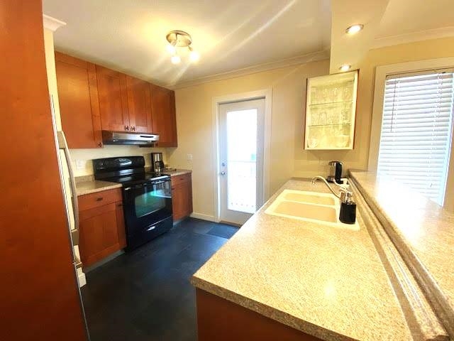 FURNISHED 3 bedrm 1/2 duplex in Lower Lonsdale. The main floor offers living room with gas fireplace and smart TV, separate dining area, fully equipped kitchen and den/office off the kitchen + laundry room. Upstairs includes 2 bedrooms each with a smart TV, bathroom with 2 sinks, + the primary bedroom has a covered private deck, large closet, + 2 pce ensuite. All linens included. Hardwood floors through out, skylights and updated kitchen. This is a contemporary home with everything you need to be comfortable. Private garden area at the front and patio at the back. 1 parking spot provided off the lane, but parking on the street is more convenient. Available mid Feb. Minimum stay is 90 days.