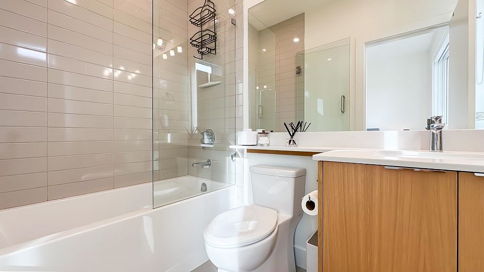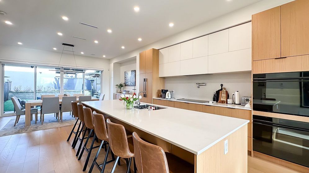 Experience luxury Lower Lonsdale living in this 2600 sq ft south-facing duplex. 4 bed 4.5 bath. Enjoy ocean and city views from two decks and the primary suite. Featuring $100k+ in upgrades: Control 4 automation, central AC, and a 250-bottle wine wall. The chef’s kitchen boasts 2 ovens, induction stove, pot filler, and wine fridge. All 3 upstairs bedrooms have private ensuites; one includes a custom Murphy bed. Low-maintenance yard with built-in BBQ and artificial turf. A 1BR legal suite (approved for short-term rentals) offers an ideal guest suite or income generator. Includes a custom-organized garage and carport (EV-ready). Quiet street, walking distance to everything Lower Lonsdale has to offer. **OPEN HOUSE:Wed Feb 11 10-12 Sat & Sun, Feb 14 & 15, 2-4 PM**