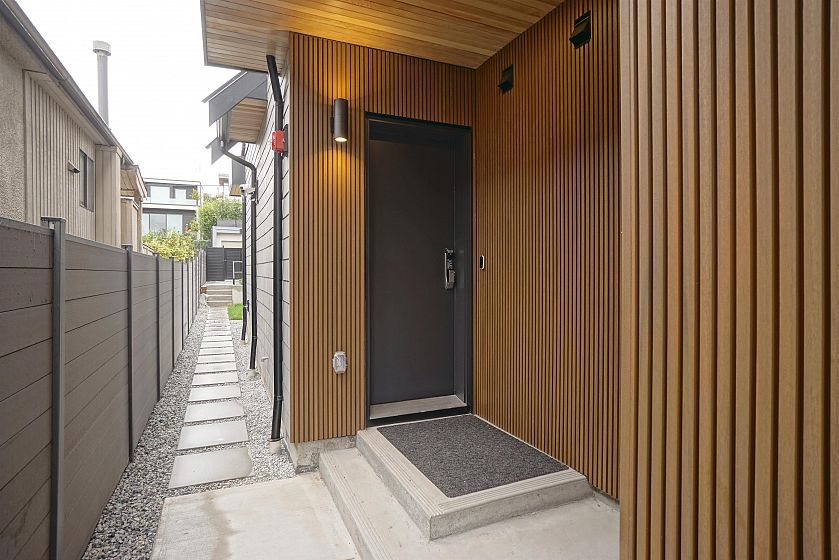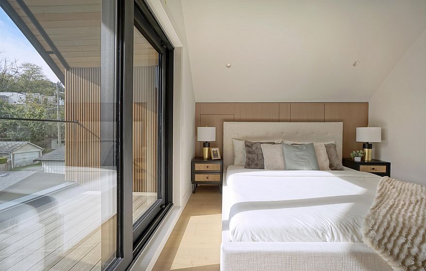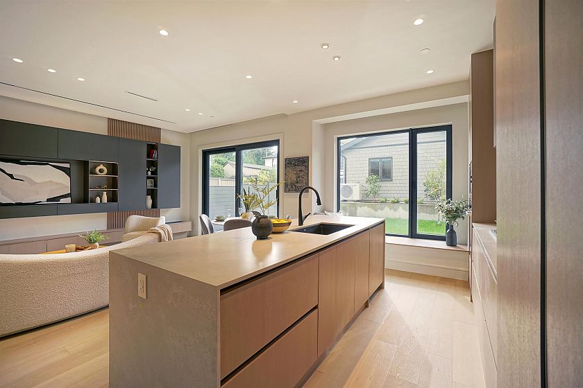 Brand-new luxury duplex in prime Kitsilano! This beautifully crafted home features 10' ceilings, triple-glazed aluminum windows and doors, premium custom millwork, and a full Miele appliance package. Comfort is provided by Daikin multi-zone A/C and heat pumps on every floor. The main level offers motorized blinds, while Techwood and metal siding add durability and efficiency. Oversized sliding doors open to a sunny deck and landscaped private yard for seamless indoor-outdoor living. A smart home system controls lighting, speakers, blinds, doorbell, and cameras. Additional highlights include an EV-ready garage, crawl space storage, fingerprint-lock gate, barrier-free showers, and in-floor heating in all bathrooms. School catchments: Carnarvon Elementary & Kitsilano Secondary.