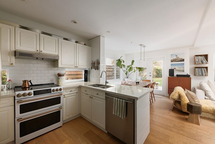 Your DREAM lifestyle awaits at this iconic 1/2 Duplex in the heart of Kitsilano! A light and airy open concept home, perfect for entertaining. 2 bed + XL den, 3 bath spread out over 1,249 sqft w/ an additional 131 sqft Detached Studio w/ soundproofing, insulation & additional storage room. The kitchen & living room has a cozy gas fireplace & flows seamlessly through double doors to a private oasis. South facing backyard, flooded with sunlight & lush landscaping incl. a mature Cherry Blossom, Magnolia tree and Japanese Maple, complete with Synlawn Grass. Thoughtful upgrades incl. Oak hardwood floors, kitchen appliances & contemporary primary bathroom w/ clawfoot tub. This home feels like a detached house, exuding a special charm that is not to be missed. Sat/Sun Open House Cancelled.