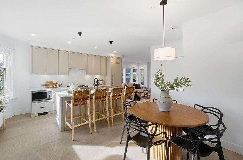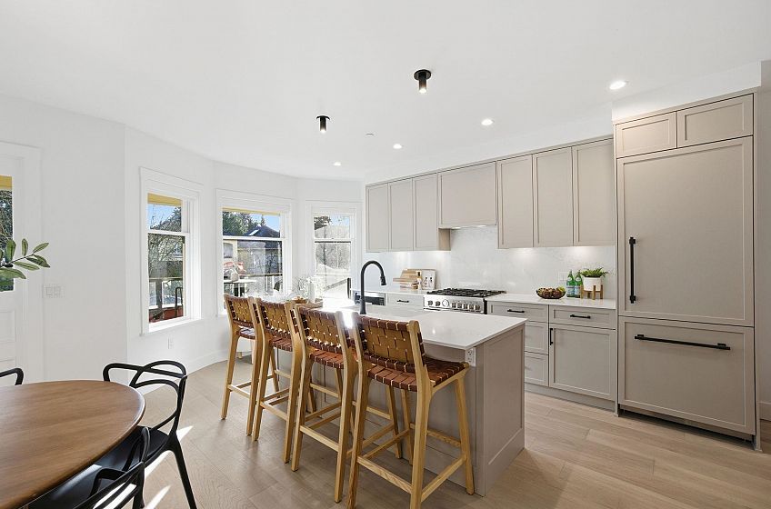 Welcome to GIBSON HOUSE, a brand new duplex within this restored 1908 heritage conversion. Over 2000 sq ft of efficient, design-forward living. White oak floors & a striking Bertazzoni kitchen anchor the open main w/covered outdoor space. Upstairs features 3 bedrooms, ideal for young families or professionals. Lower floor w/separate entry & rough-in for nanny suite or income potential. Heat pump (A/C), HRV & full-size laundry. Private detached garage. Part of a rare landmark restoration preserving original proportions, 2 verandahs, presence & historic streetscape character. Prime Grandview Woodland near Commercial Dr, parks & easy Downtown access.OPEN HOUSE MARCH 14, 2-4pm