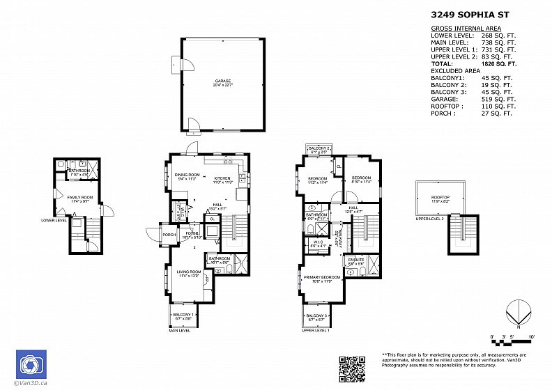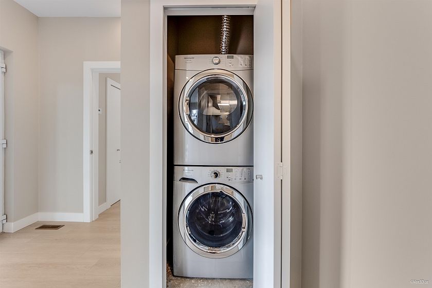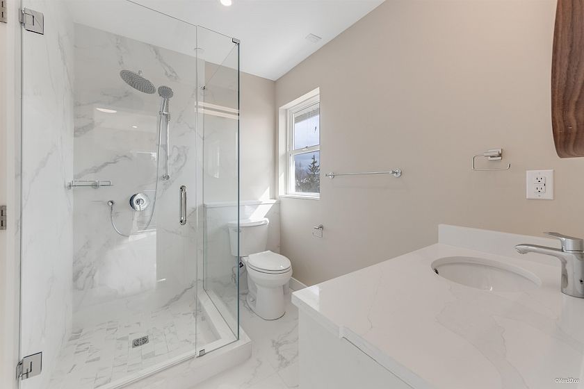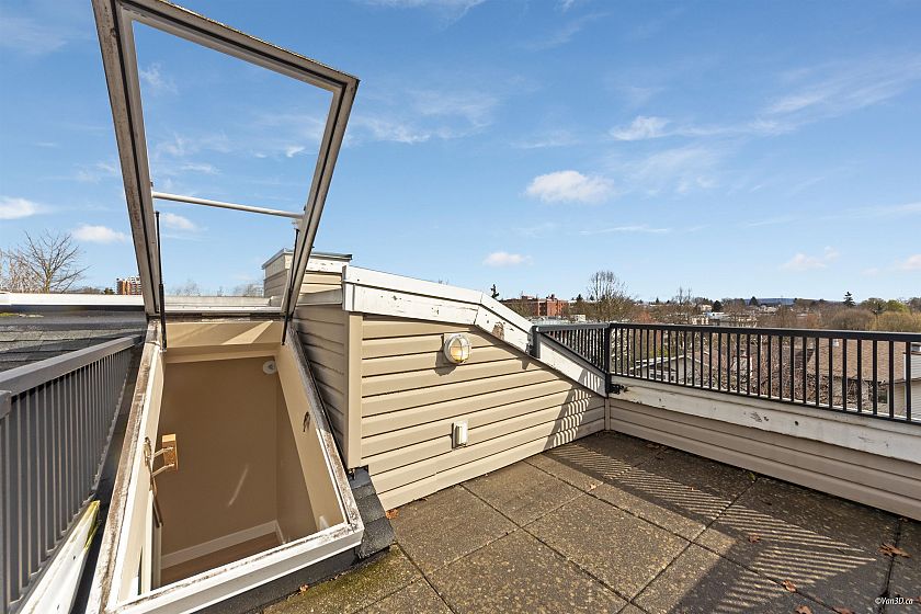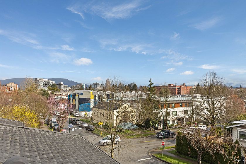 Custom-built ½ duplex just off Main Street, offering exceptional living in the heart of Mount Pleasant. Positioned on a desirable corner lot, this three-level home features a private rooftop deck with panoramic neighbourhood and mountain views. The main floor showcases an open-concept layout with soaring ceilings and a gourmet kitchen designed for entertaining. Double garage plus ample street parking nearby. Upstairs offers a spacious bedroom and dedicated home office, ideal for modern living. Unbeatable location steps to parks, transit, shops, and dining, and within walking distance to Mount Saint Joseph Hospital and Tea Swamp Park.