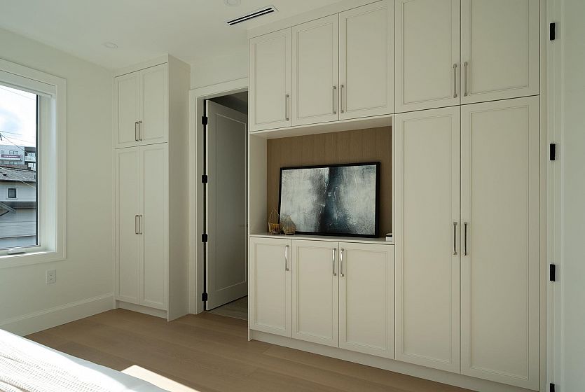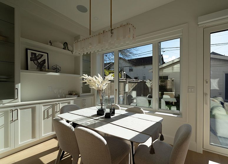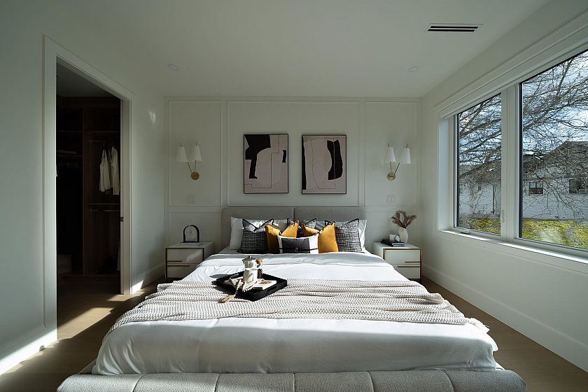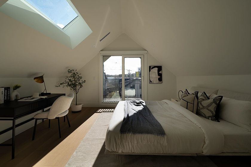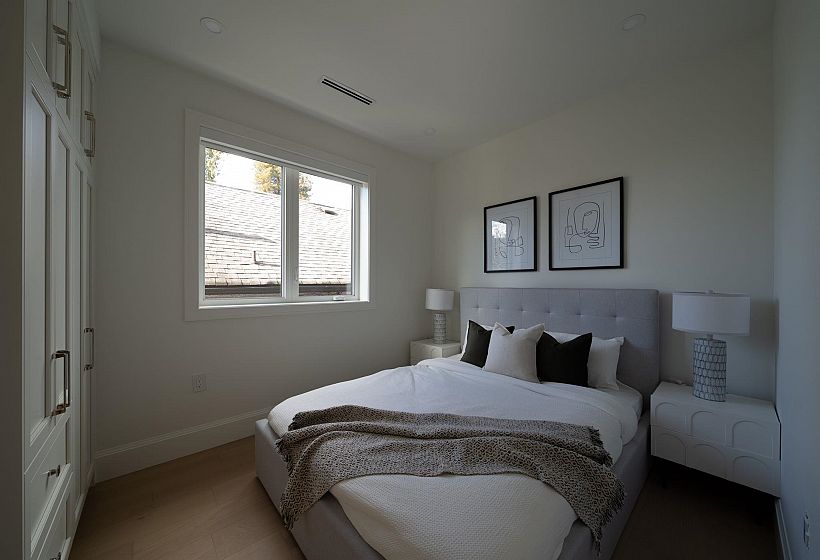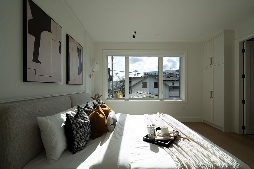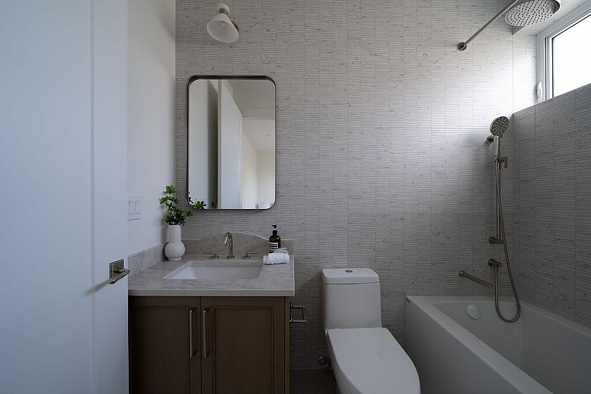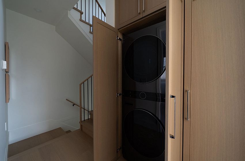 Tucked quietly at the rear, this brand-new 3 bed, 3.5 bath duplex by Vanquish Homes offers exceptional privacy with refined modern design and thoughtful craftsmanship throughout. The open-concept layout features a chef-inspired kitchen with premium Fulgor Milano appliances, professional-grade 6-burner range, integrated refrigerator, marble and quartz countertops, and custom millwork cabinetry. Bright living spaces connect seamlessly to private outdoor areas through oversized sliding glass doors. Enjoy radiant in-floor heating, A/C, designer lighting, motorized blinds, and wide-plank engineered oak flooring. Spa-inspired bathrooms, a spacious primary retreat, EV charger rough-in, and 2-5-10 new home warranty complete this beautifully designed home.